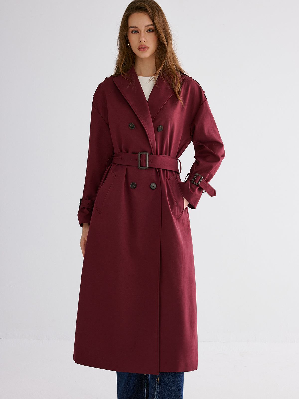 belted,burgundy,clothing,coll:outerwear,coll:tops,coll:trending,corpcore,fall,feminine,fff,in_six_month,inner sample,long sleeve,long top,non-stretch,not_low_sales,oa250812043,outerwear,photo_model,regular,regular fit,trench coats,winter,winter hues,women,woven fabric