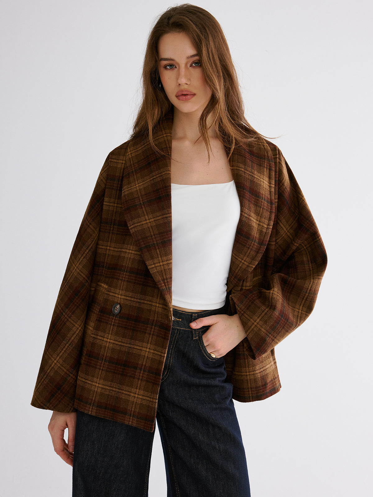 a-none,brown,clothing,coll:outerwear,coll:plaids_polka,coll:tops,coll:trending,fall,fff,in_six_month,inner sample,long sleeve,minegence,non-stretch,not_low_sales,oa250809012,outerwear,oversized,photo_model,plaid,regular,warm,winter,women,wool coats,woven fabric
