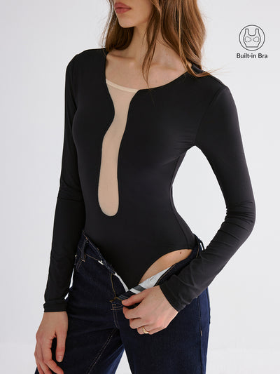 Bra Free Soft Line Open Back Long Sleeve Shirt
