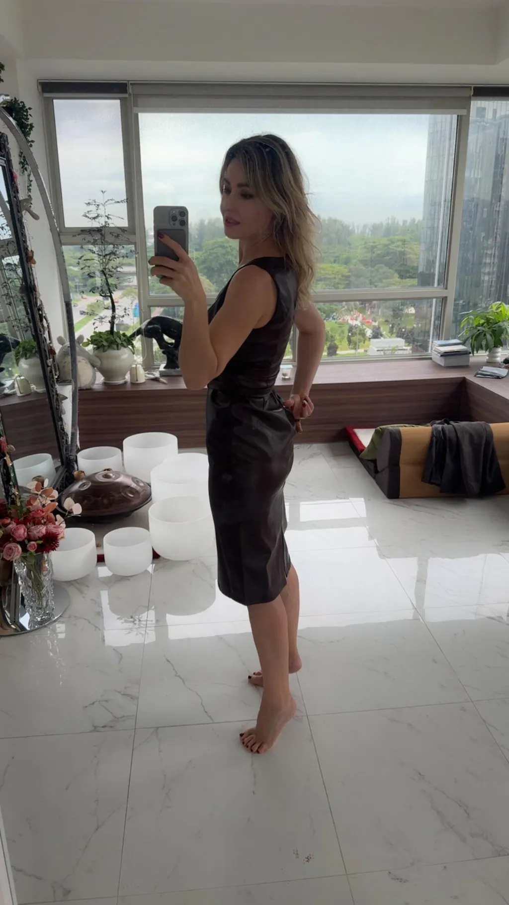 Faux Leather Sleeveless Midi Dress