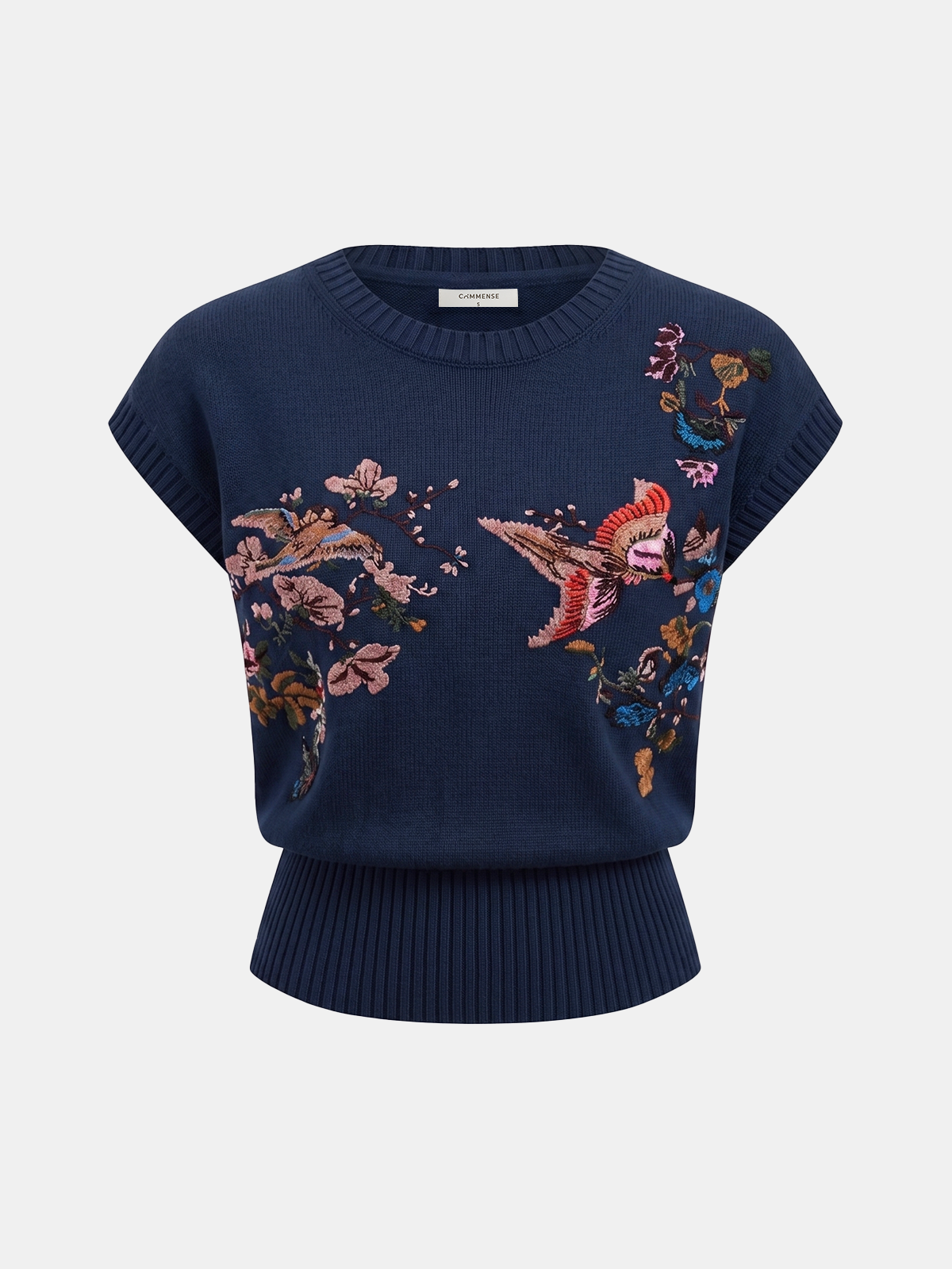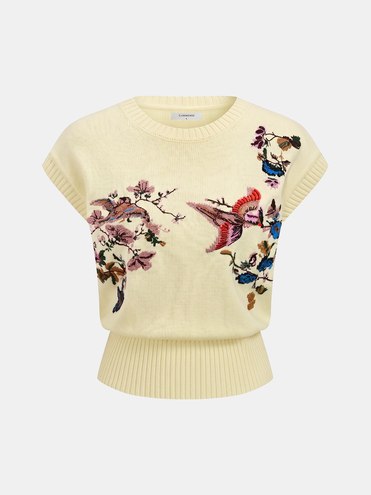 Embroidered Floral Bird Knit Vest
