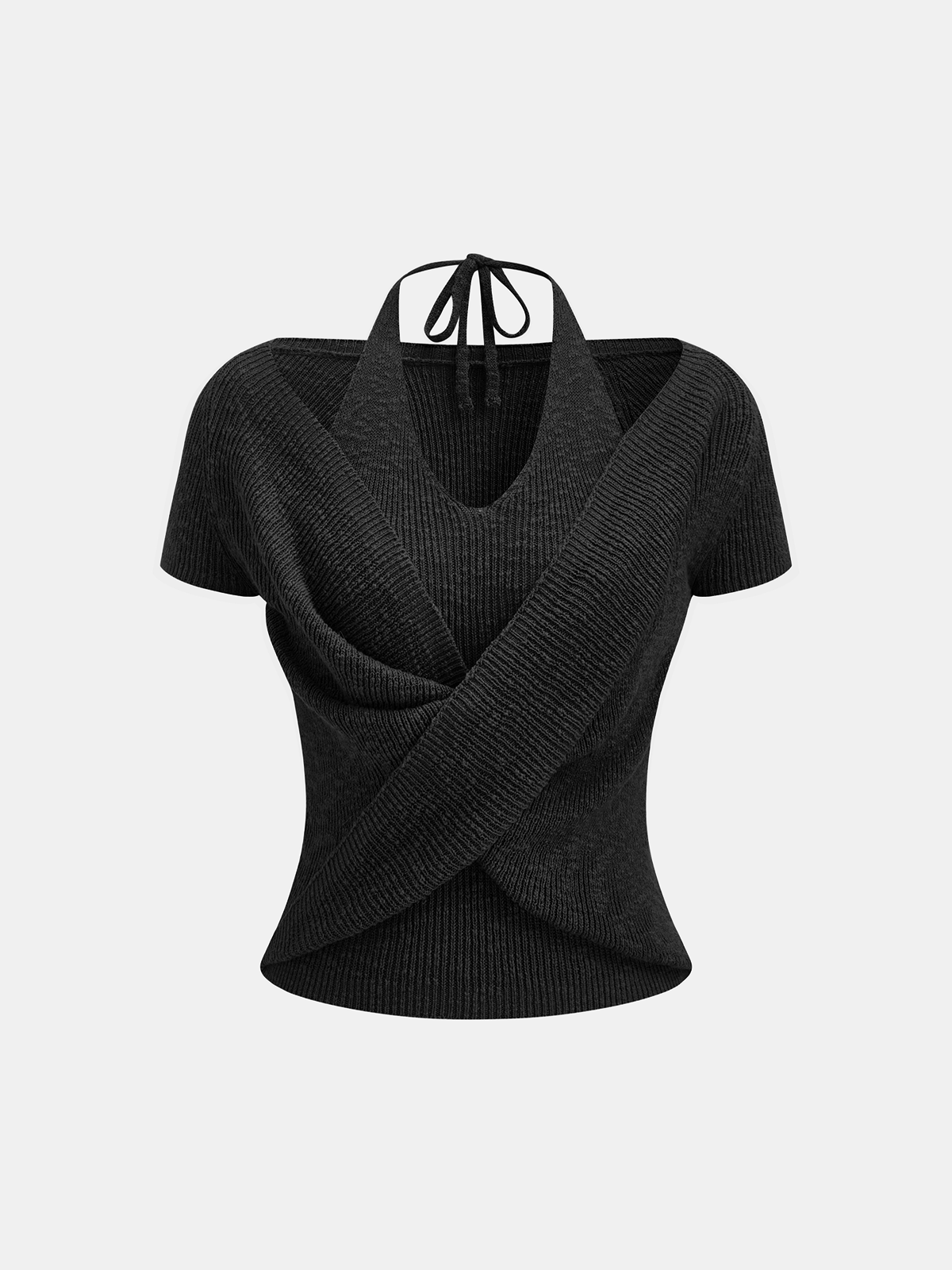 Halter Wrap Short Sleeve Knit Top