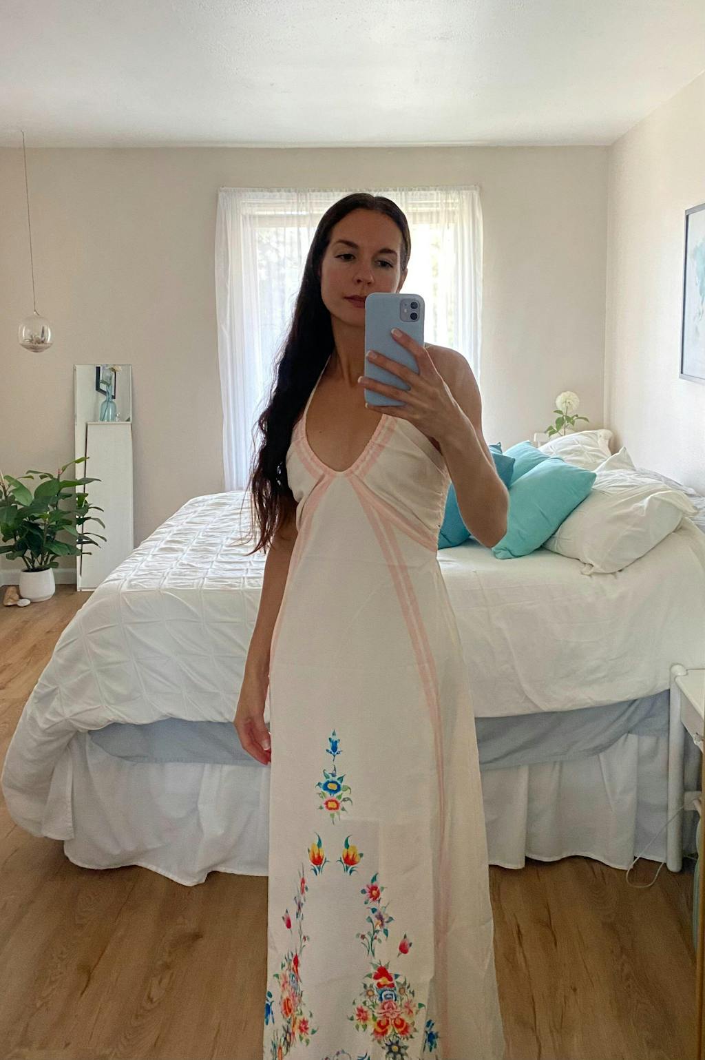 So pretty and comfortable! I love the cute floral pattern and cut out in the back—this dress would be perfect for a summer trip to Europe. I'll be sure to steam it before I actually wear it out and about. You can kind of see where the second layer of the dress ends underneath the outer layer, but that doesn't bother me too much. I normally wear an xs and that size worked perfectly.