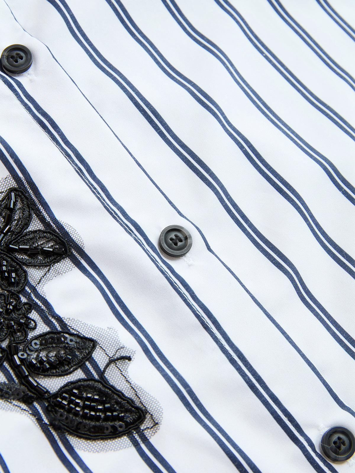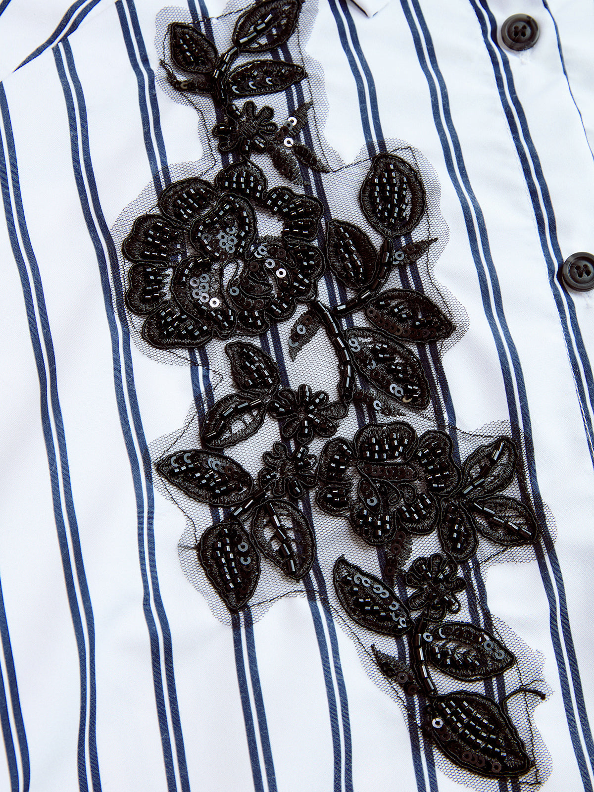 Sequin Floral Applique Striped Shirt