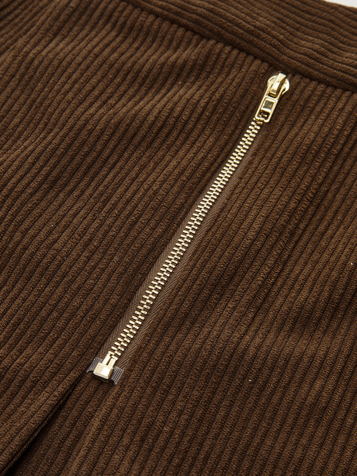 Zipper Detail Corduroy Wide-Leg Pants