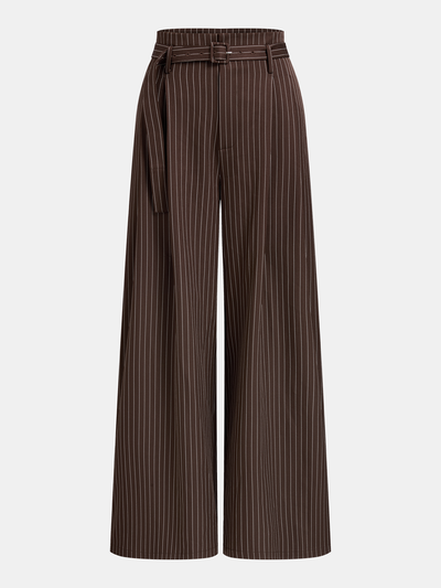Belted Pinstripe Wide-Leg Pants