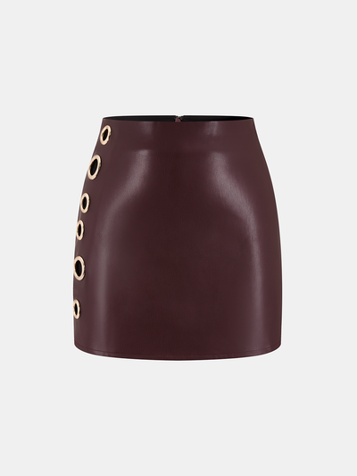 Metal Eyelet Faux Leather Mini Skirt