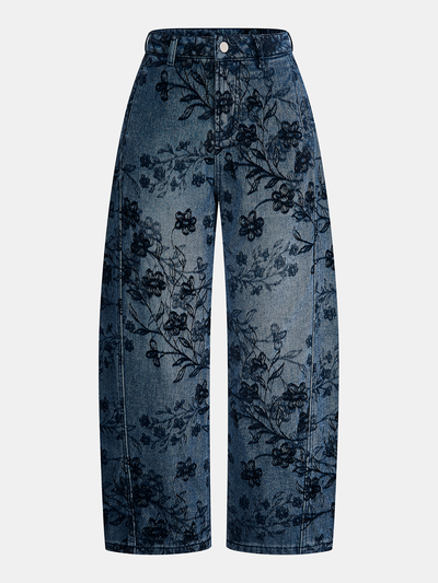 Floral Jacquard Curved-Leg Jeans
