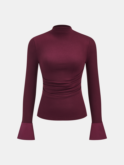 Cuff Panel Mock Neck Ruched Top