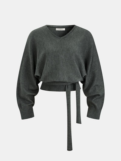 Tie-Waist Batwing-Sleeve Cropped Sweater