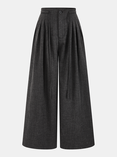 Pleated Drawstring Wide-Leg Pants