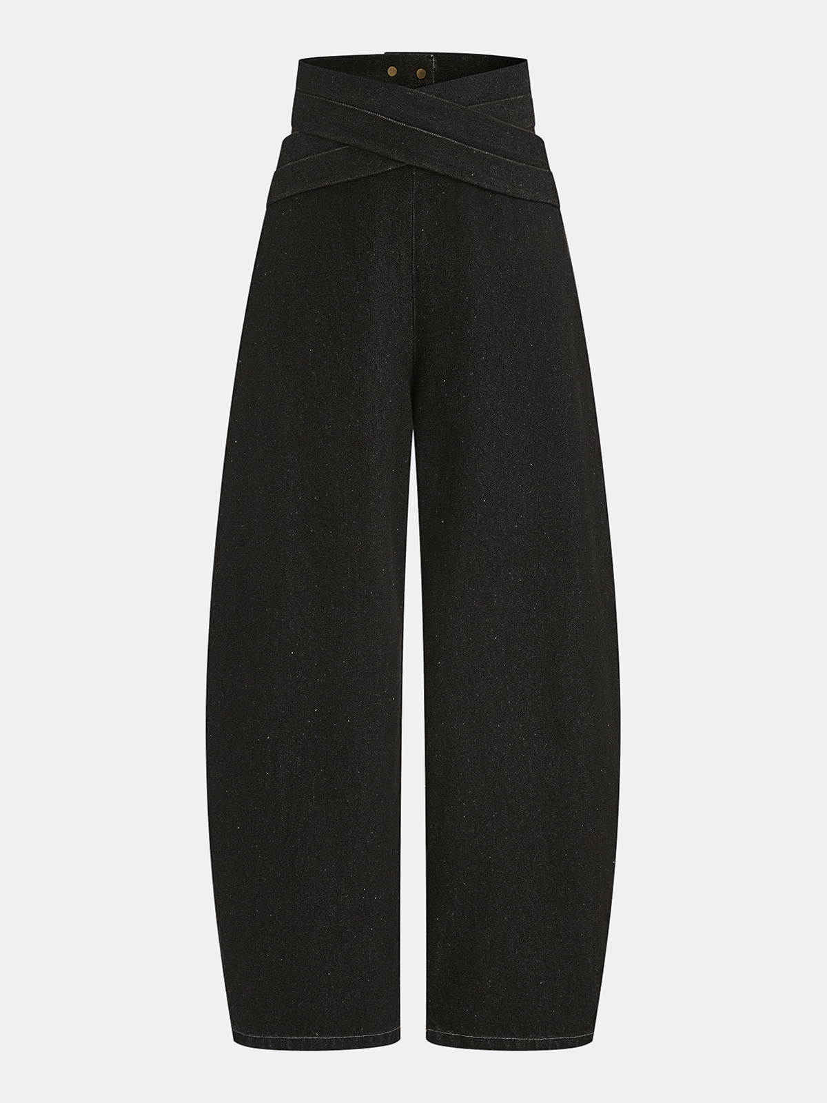 Cross-Over High-Waist Denim Wide-Leg Jeans