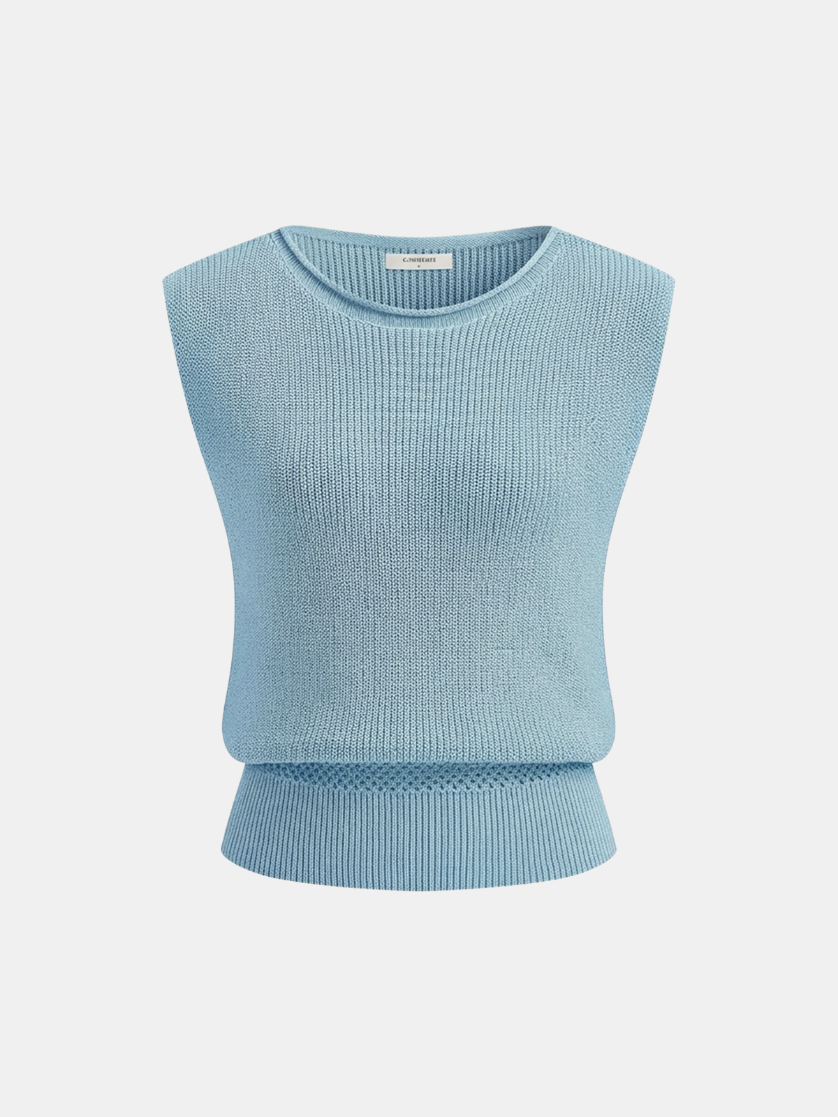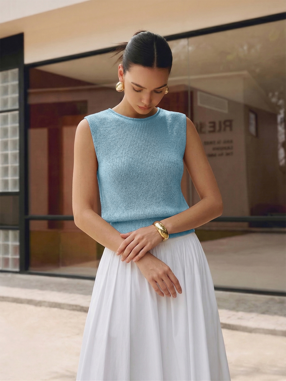 bloused waist,casual,clothing,coll:knitwear,coll:sweaters_cardigans,coll:tops,coll:trending,coll:vests,corpcore,feminine,in_six_month,khaki,knit,knitwear,lightblue,medium stretch,not_low_sales,oa251224021,photo_ai,regular,regular fit,sweater vests,women