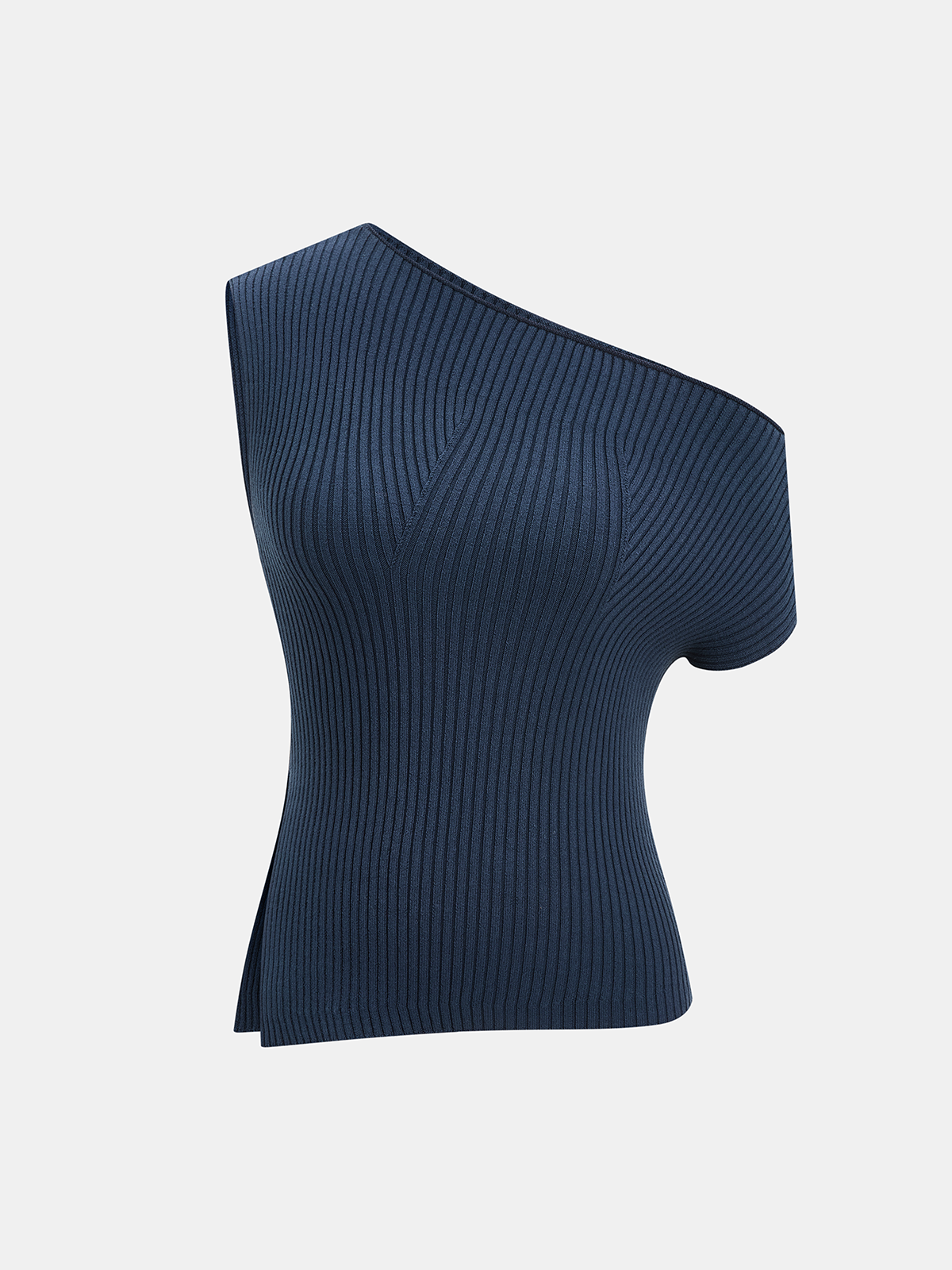 Ribbed Knit One-Shoulder Asymmetrical Top