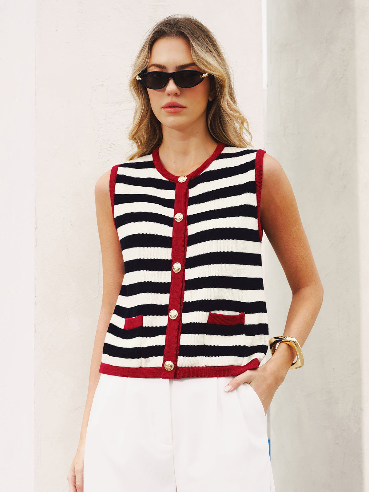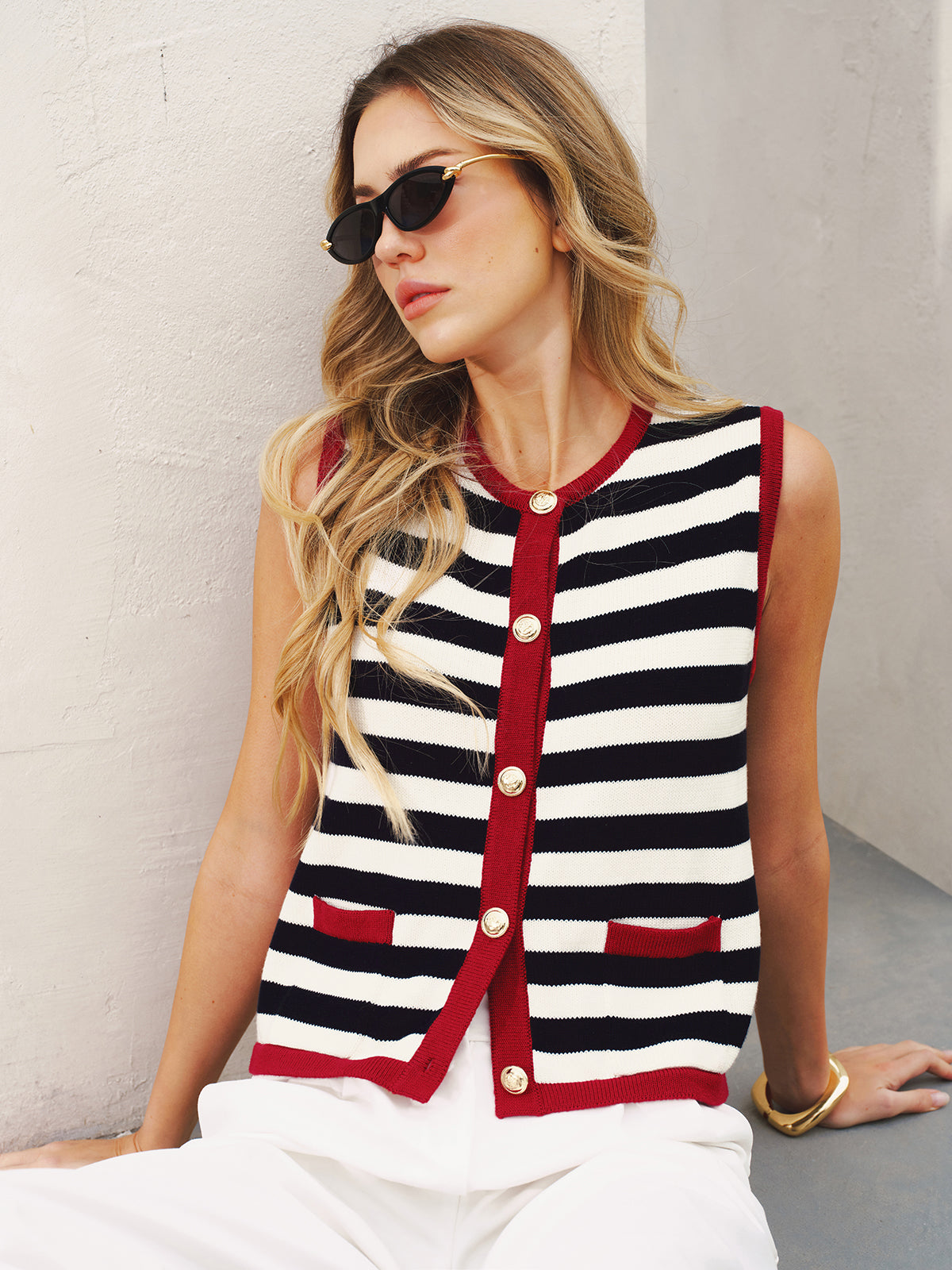 Striped Sleeveless Buttoned Sweater Vest