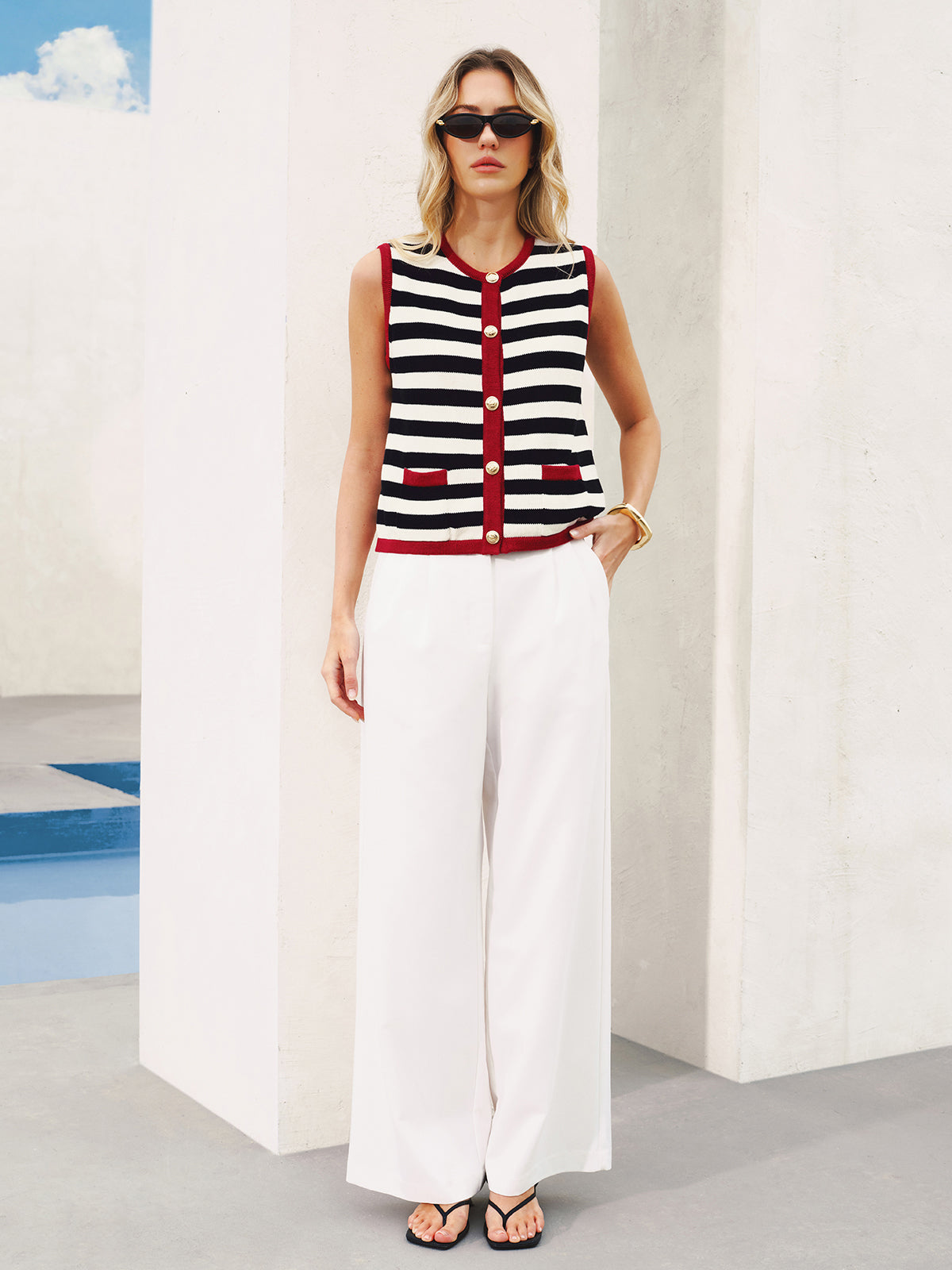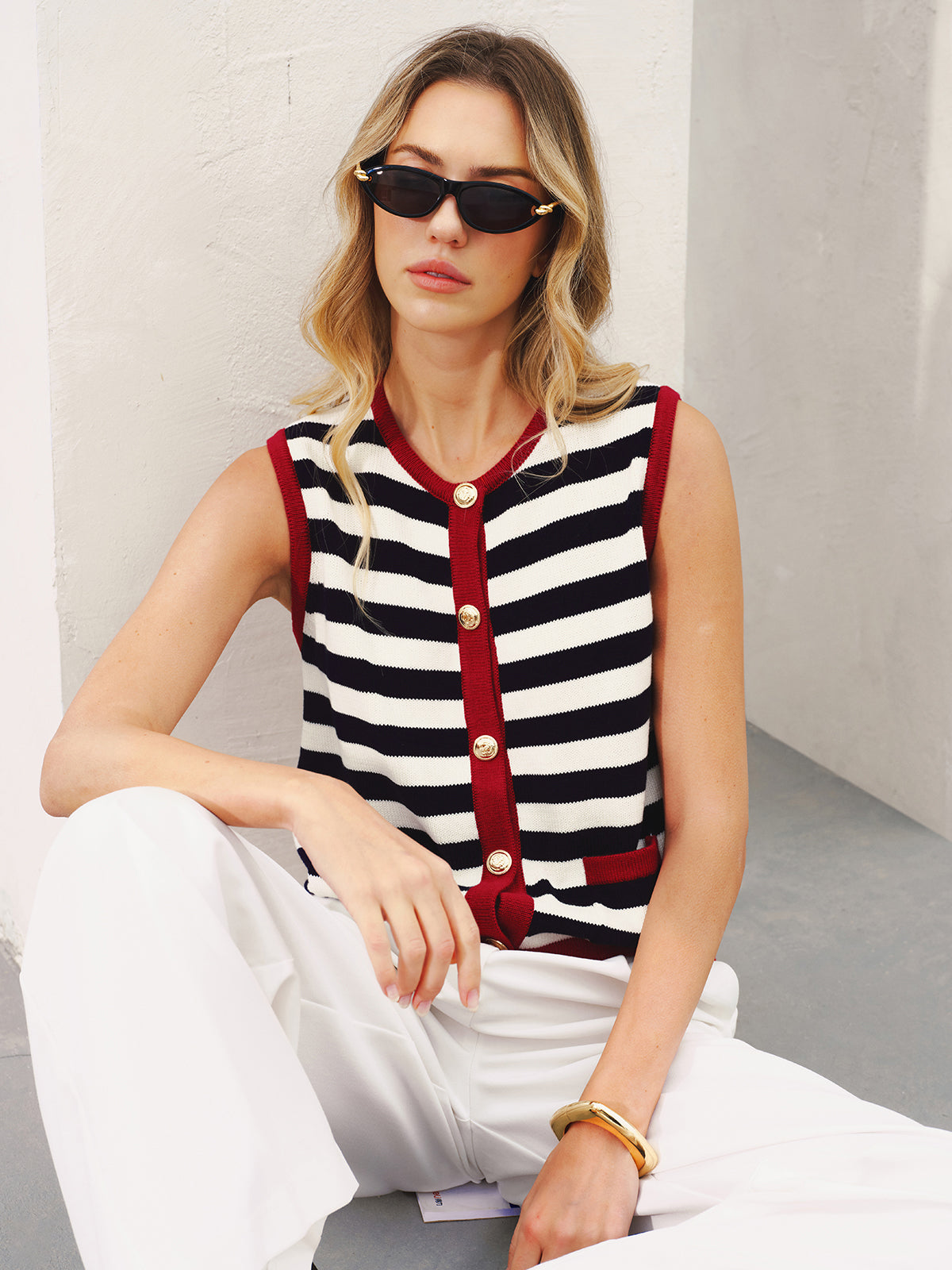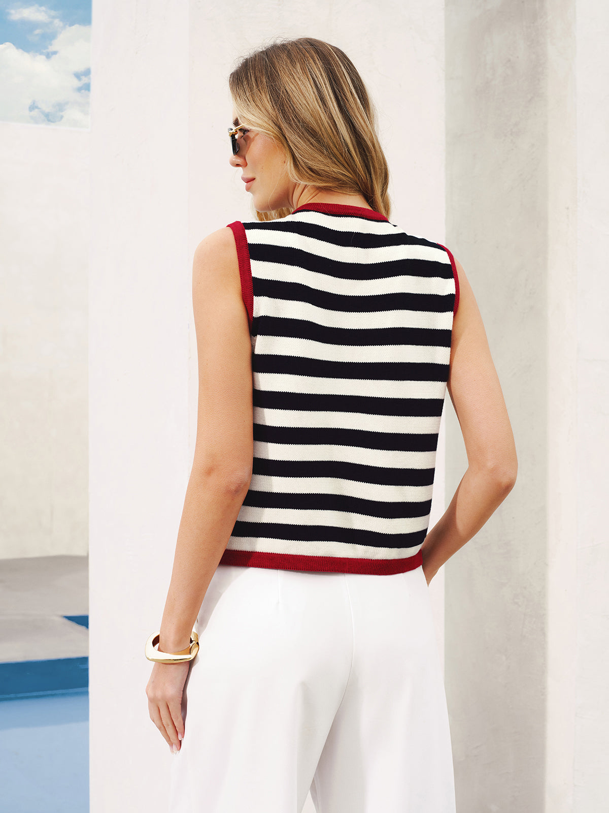 bluewhite,casual,clothing,coll:knitwear,coll:sweaters_cardigans,coll:tops,coll:trending,coll:vests,contrast piping / trim,corpcore,in_six_month,knit,knitwear,metal detail,minegence,mwt,mwt-ss,not_low_sales,oa251213012,off-shore collective,photo_model,regular,regular fit,slight stretch,stripe,sweater vests,women
