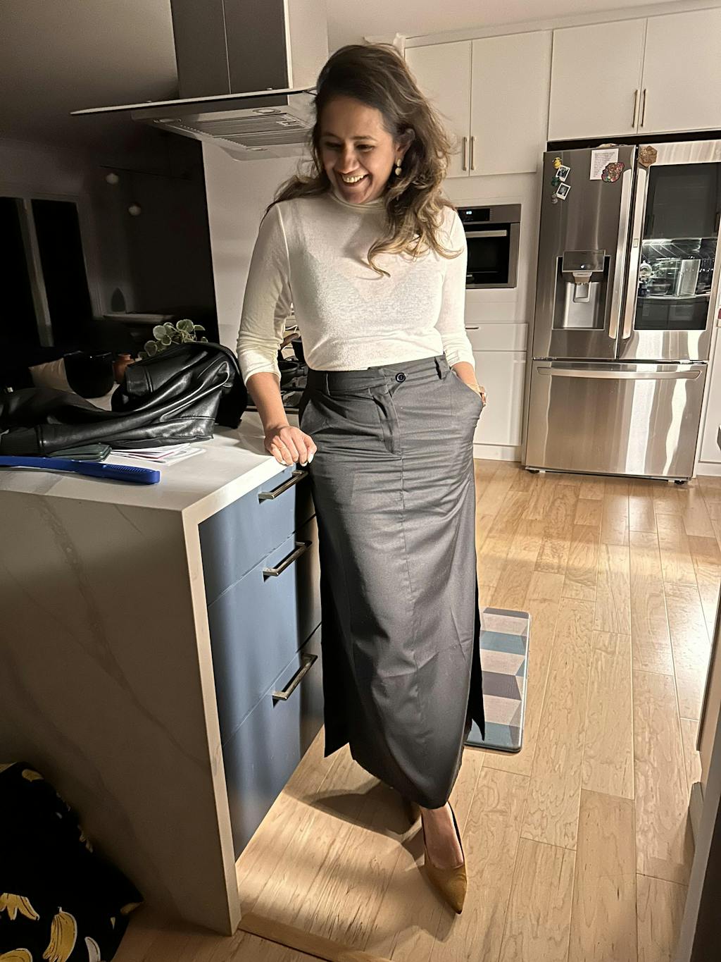 This is my absolute favorite piece. I have it since a month and have already rocked the fit 5 times. It’s very flattering, makes you look taller and the material is rich. Pairs best with white turtle necks (translucent) and basic white fitted shirt. Wear your most comfy heels with it and you’ll feel like the main character all day long! 10/5 stars