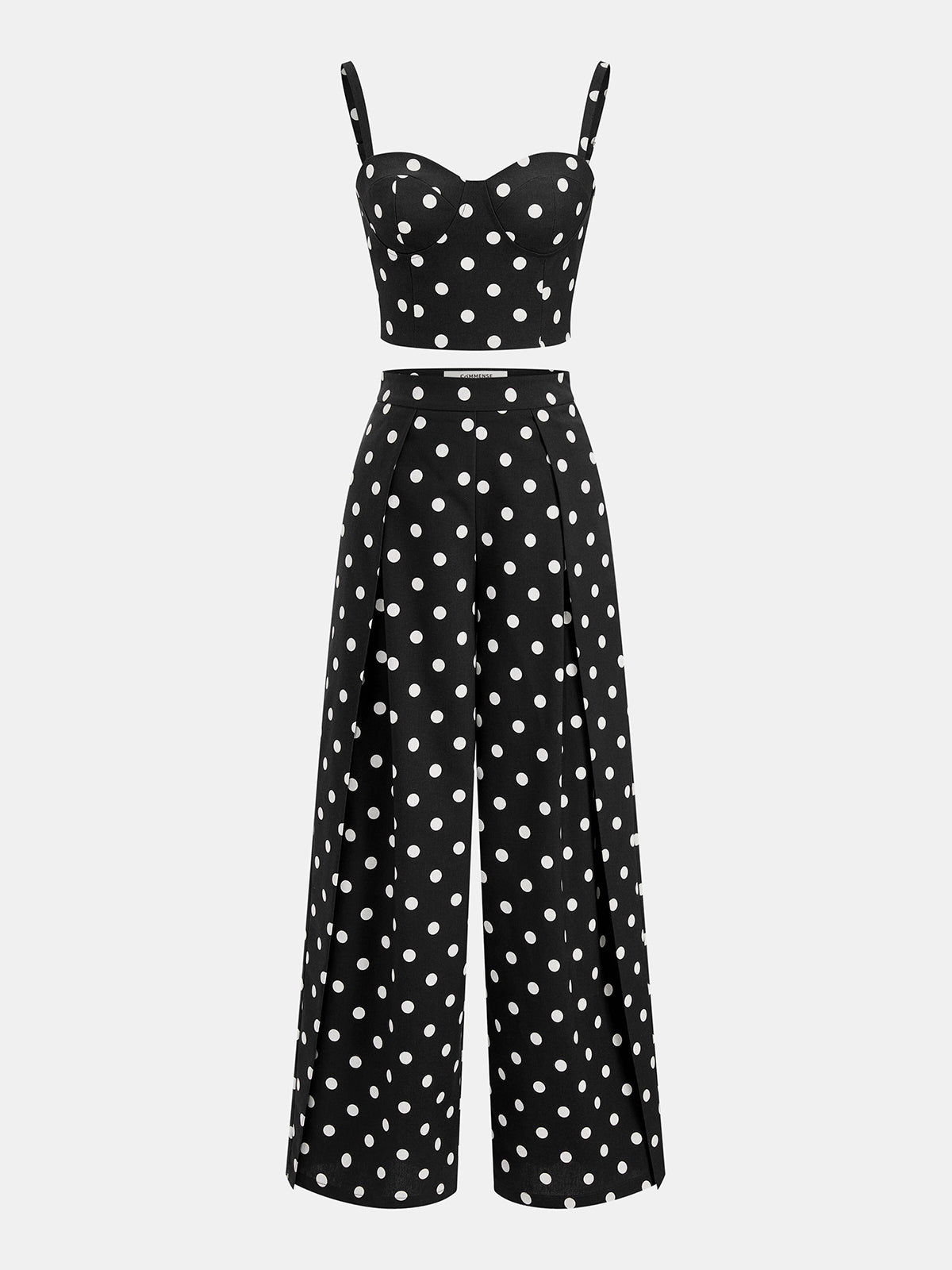 adjustable straps,blackandwhite,brown,casual,cici select,clothing,coll:bottoms,coll:linen_cotton,coll:matching_sets,cotton&linen,in_six_month,invisible zipper,minegence,no,not_low_sales,oa251230009,pant sets,pleated,polka dot,regular,regular fit,sets,slight stretch,women