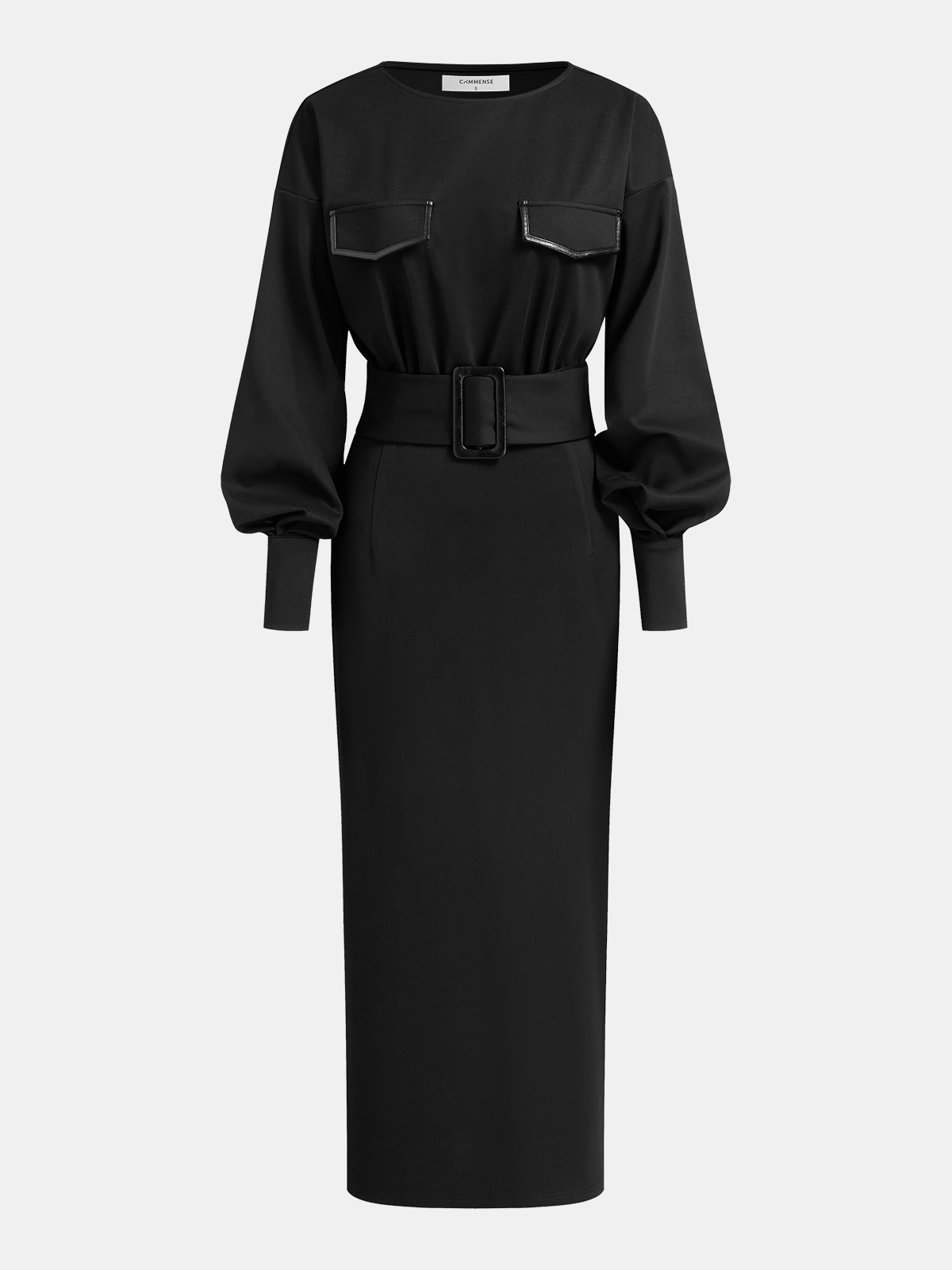 belted,black,casual,clothing,coll:dresses,crew neck,date,dresses,fall,in_six_month,invisible zipper,jersey,long sleeve,medium stretch,midi,minegence,no,not_low_sales,oa250929011,patchwork,regular,regular fit,winter,women