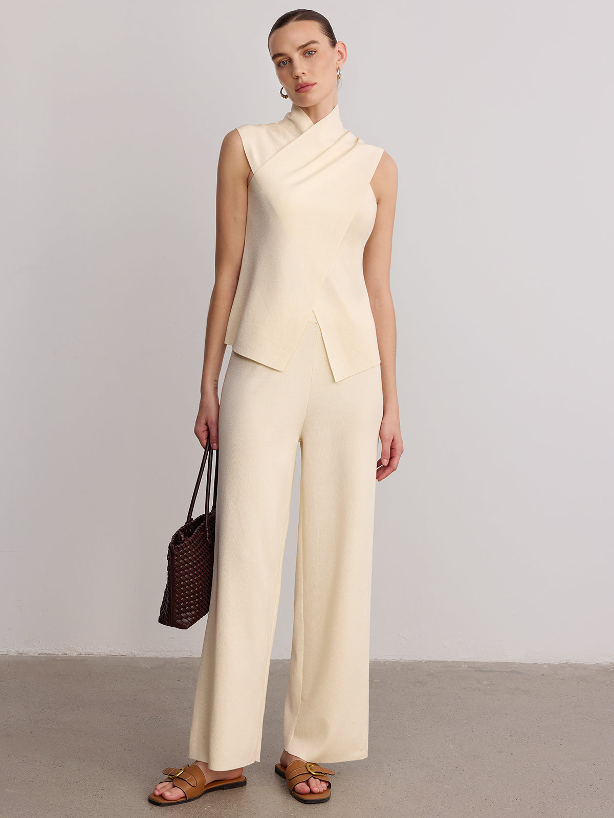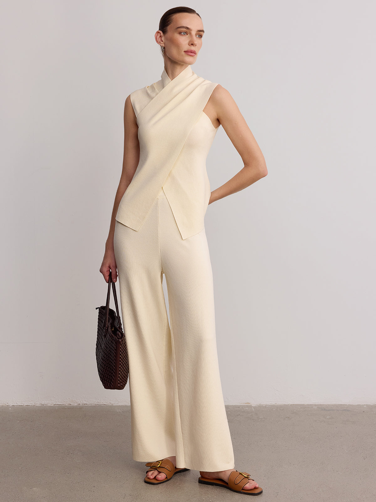 asymmetric,beige,casual,clothing,coll:bottoms,coll:matching_sets,coll:trending,coll:vacation,coll:weekend_getaway,cross wrap,elastic waistband,high stretch,in_six_month,knit,minegence,not_low_sales,oa251107084,pant sets,photo_model,regular,sets,shift,summer hues,vacation,women