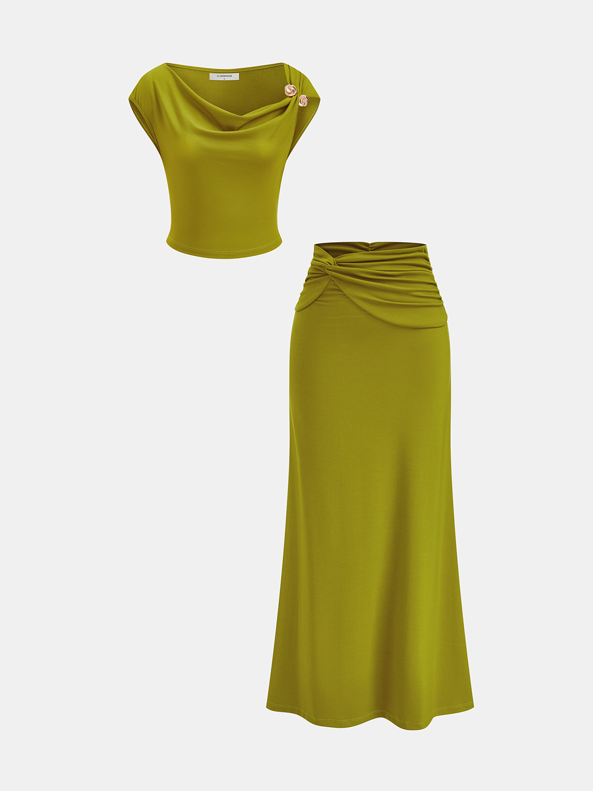 casual,clothing,coll:matching_sets,coll:skirts,corpcore,drape,green,high stretch,in_six_month,jersey,metal detail,minegence,not_low_sales,oa260115002,regular,regular fit,sets,skirt sets,summer hues,women