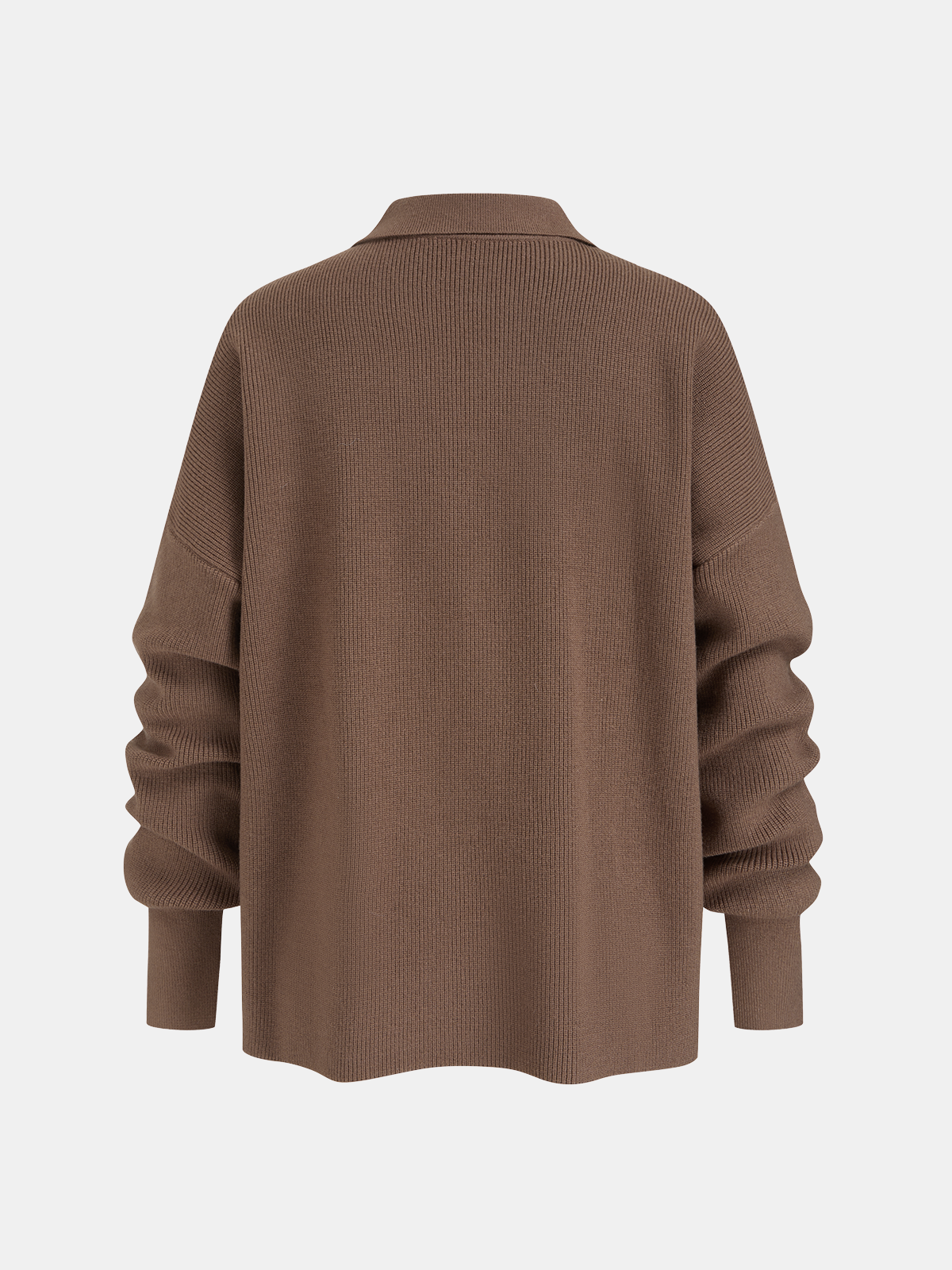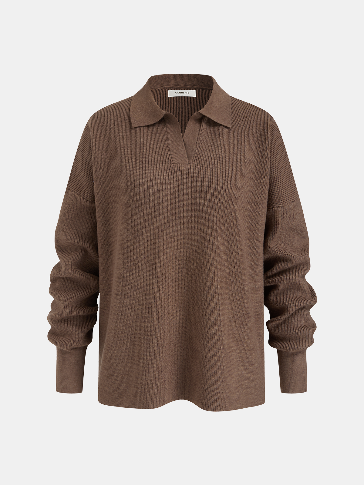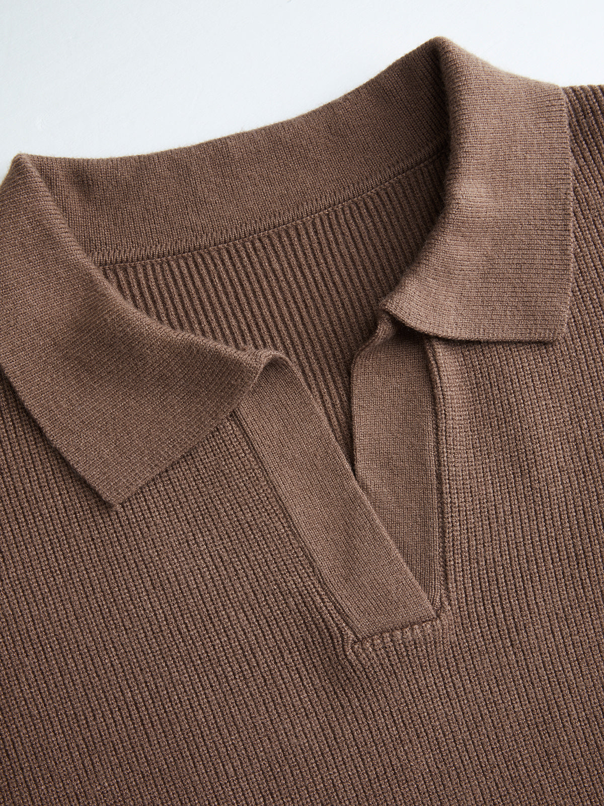 Polo-Neck Knit Top & Tie-Waist Midi Skirt Set