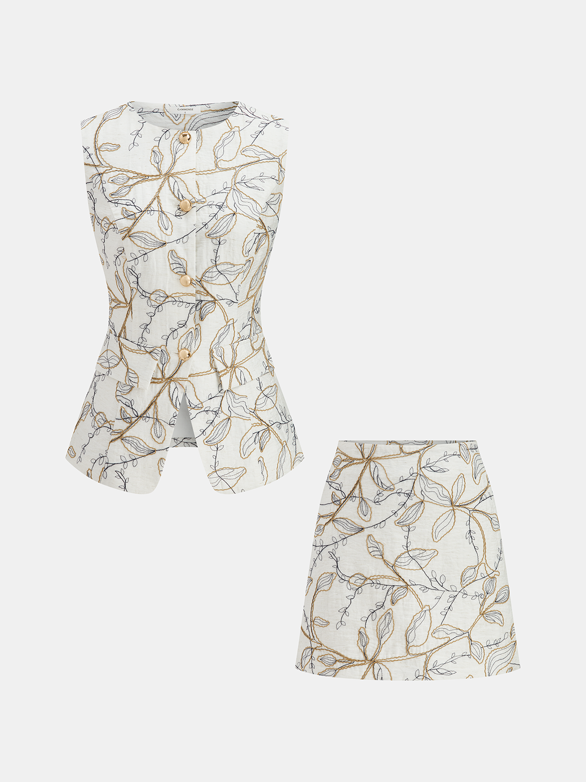 beige,casual,clothing,coll:matching_sets,coll:skirts,coll:vests,corpcore,feminine,in_six_month,non-stretch,not_low_sales,oa251225050,regular,regular fit,sets,short sets,ss pattern,women,woven fabric