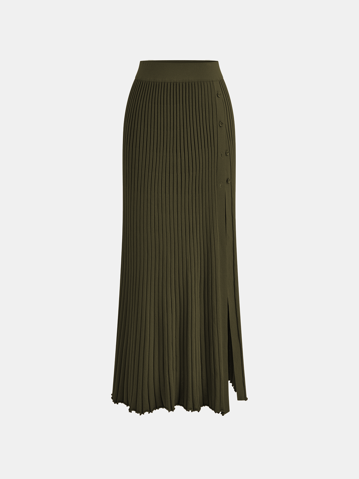 Ribbed Side Slit Button Detail Midi Skirt