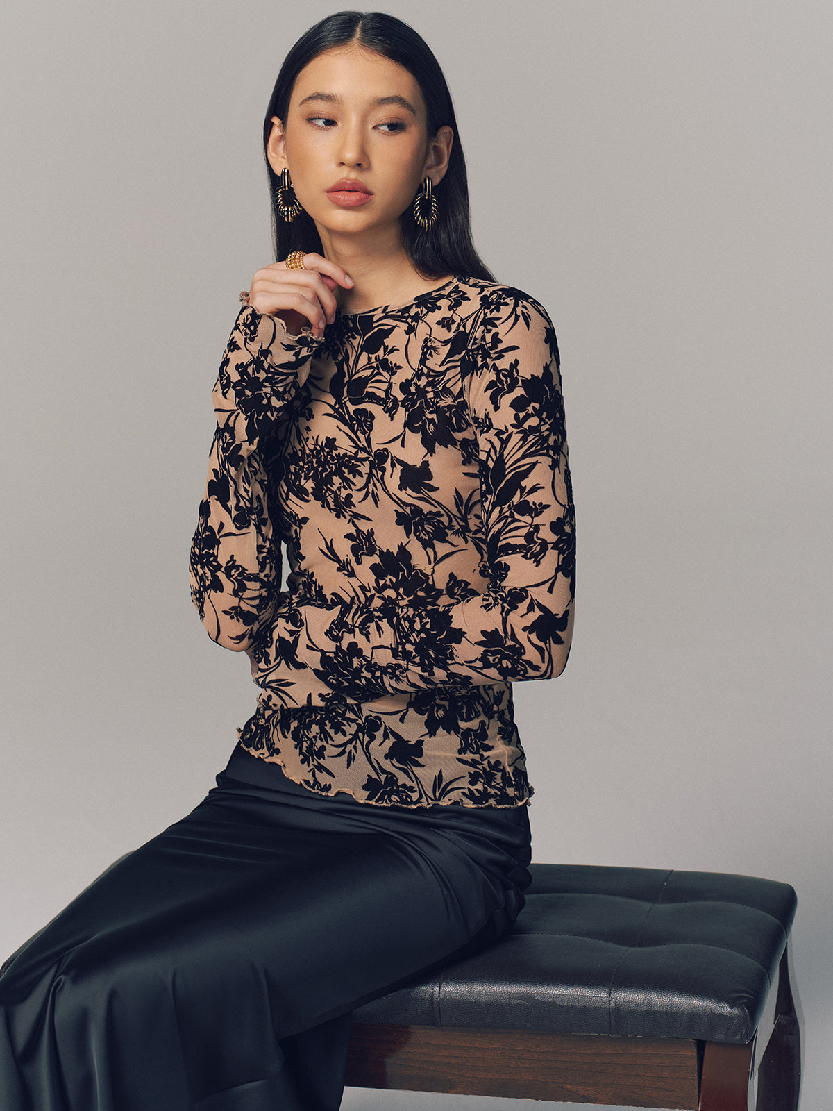 aw pattern,black,blouses,casual,clothing,coll:blouses_shirts,coll:tops,crew neck,date,fall,feminine,in_six_month,long sleeve,medium stretch,mesh,not_low_sales,oa251015008,photo_model,regular,regular fit,semi-sheer,tops,tye dye print,winter,women