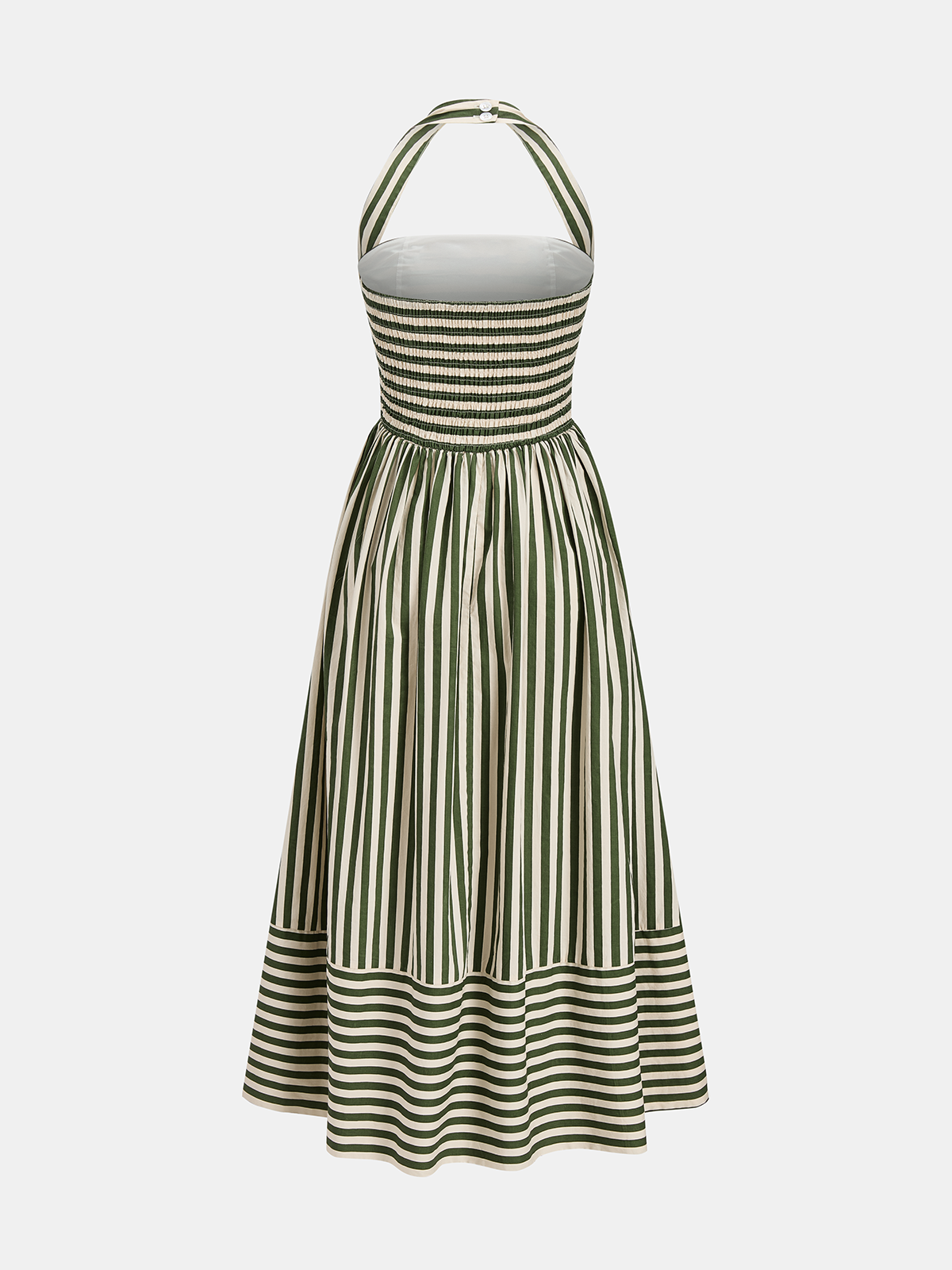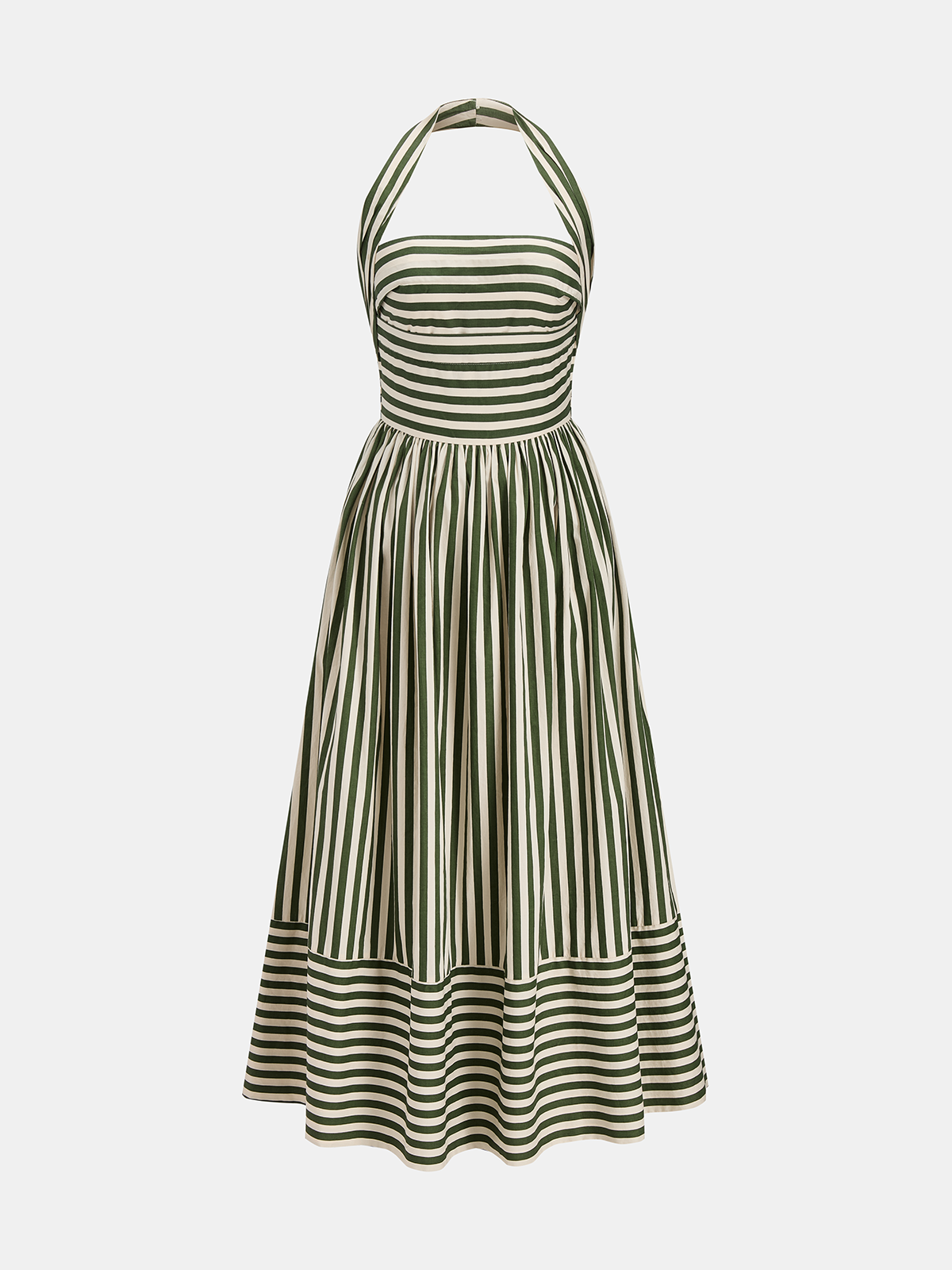 casual,clothing,coll:dresses,coll:linen_cotton,coll:vacation,coll:weekend_getaway,collarless,cotton,dresses,feminine,green,halter,in_six_month,invisible zipper,midi,no,non-stretch,not_low_sales,oa251225049,regular,regular fit,sleeveless,stripe,summer hues,umbrella hem,vacation,women