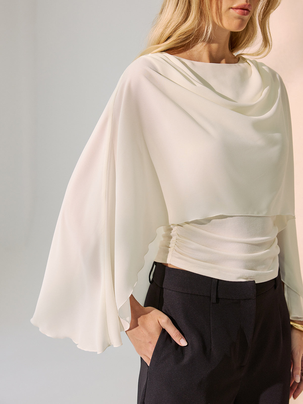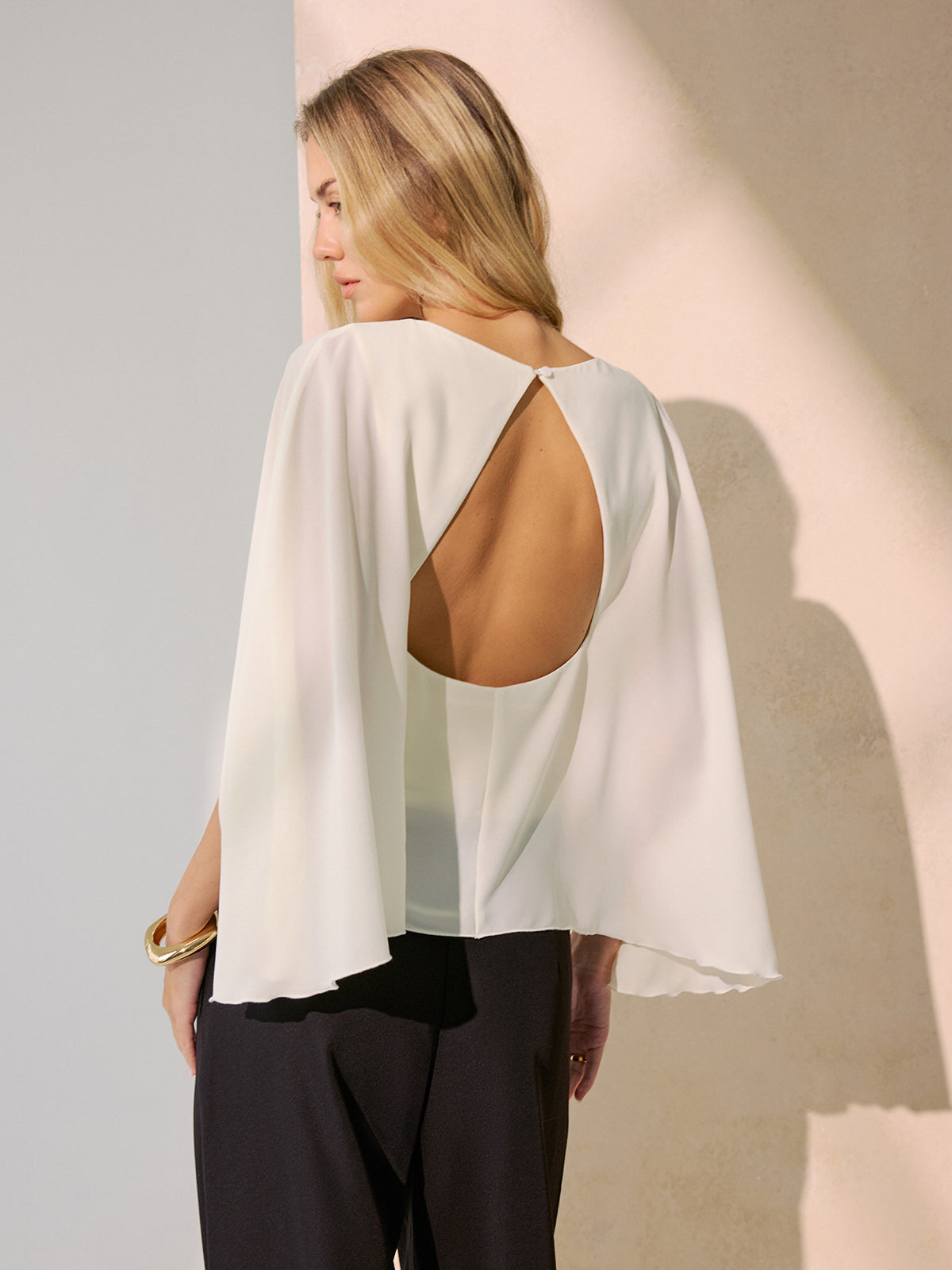 3/4 length sleeve,backless,casual,chiffon,clothing,coll:blouses_shirts,coll:sheer_bare-back,coll:tops,coll:vacation,coll:weekend_getaway,crew neck,high stretch,in_six_month,minegence,modern minimal,no,not_low_sales,oa251215013,off-white,patchwork,photo_model,regular,regular fit,shirts,tops,vacation,women