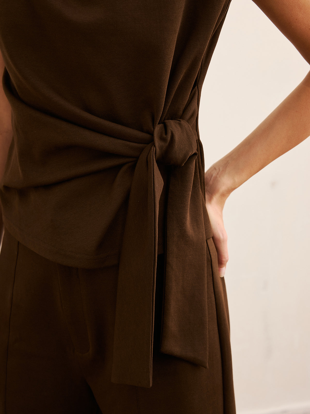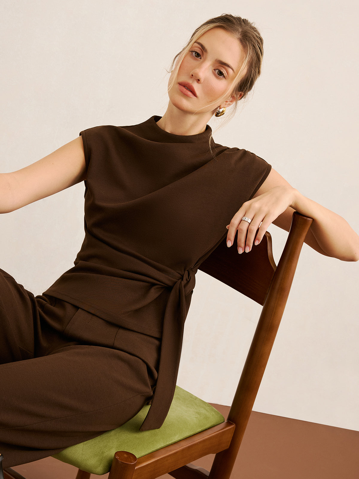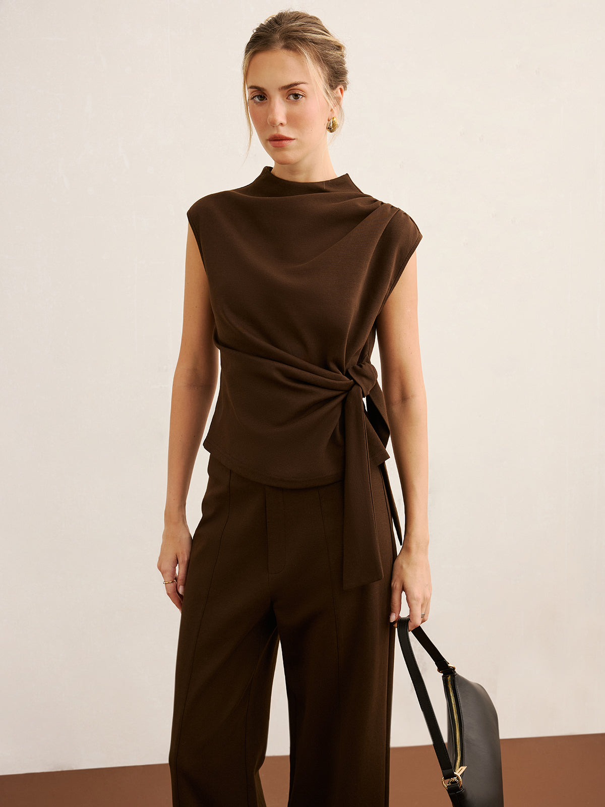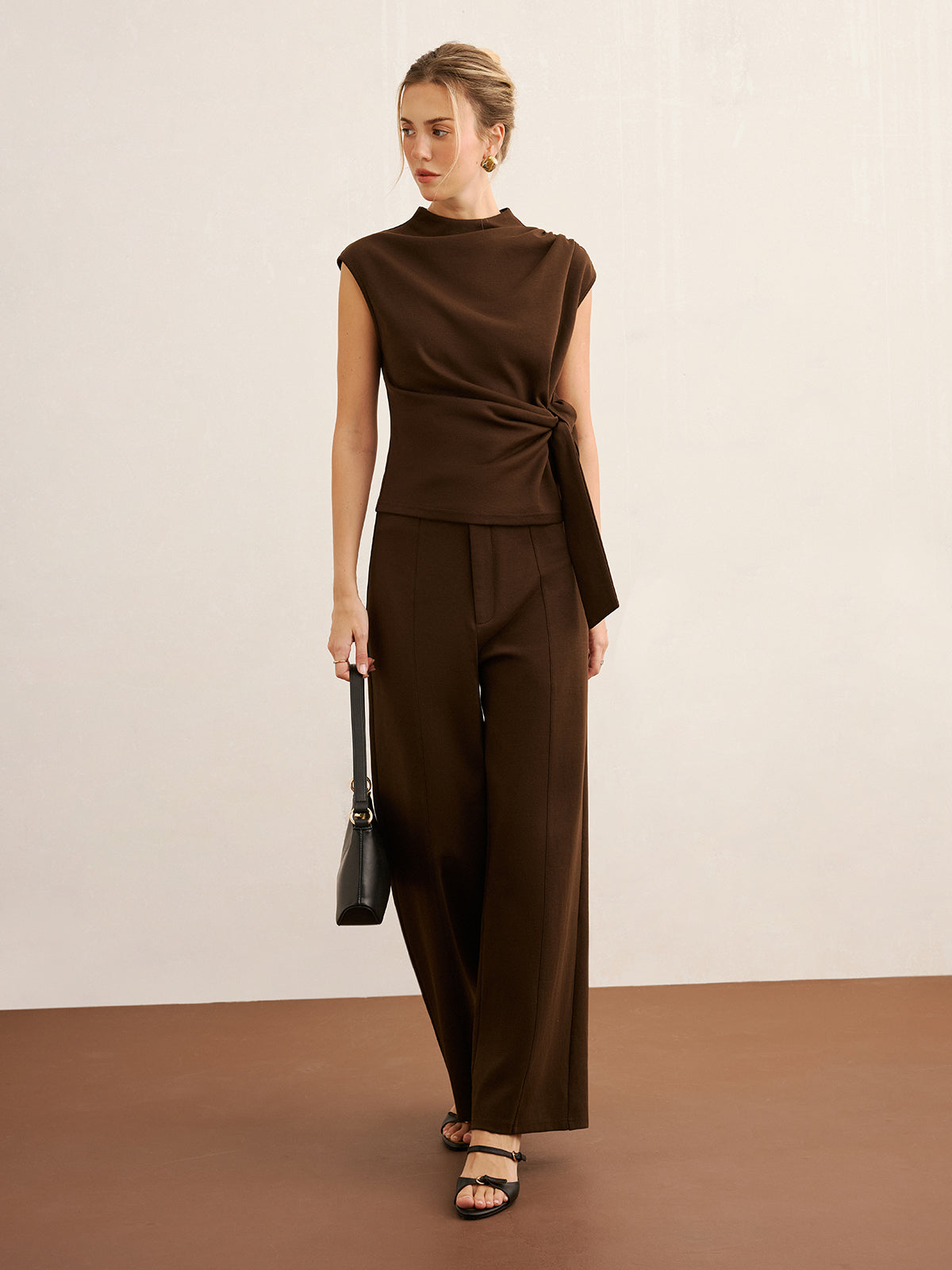 Twist Front Sleeveless Top & Wide-Leg Pants Set