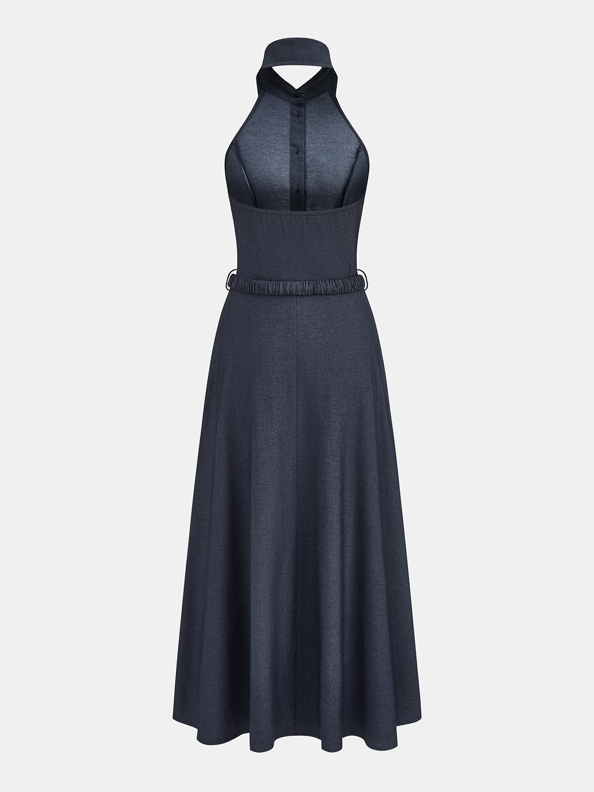 belted,blue,casual,clothing,coll:denim,coll:dresses,coll:vacation,coll:weekend_getaway,collar,denim,denim dresses,dresses,in_six_month,maxi,metal detail,minegence,no,non-stretch,not_low_sales,oa260305055,photo_ai,regular,regular fit,sleeveless,umbrella hem,vacation,women