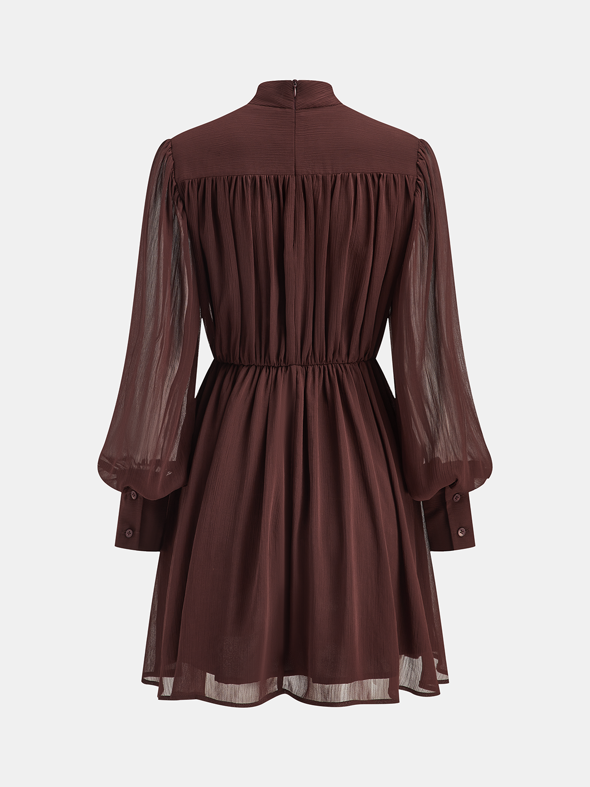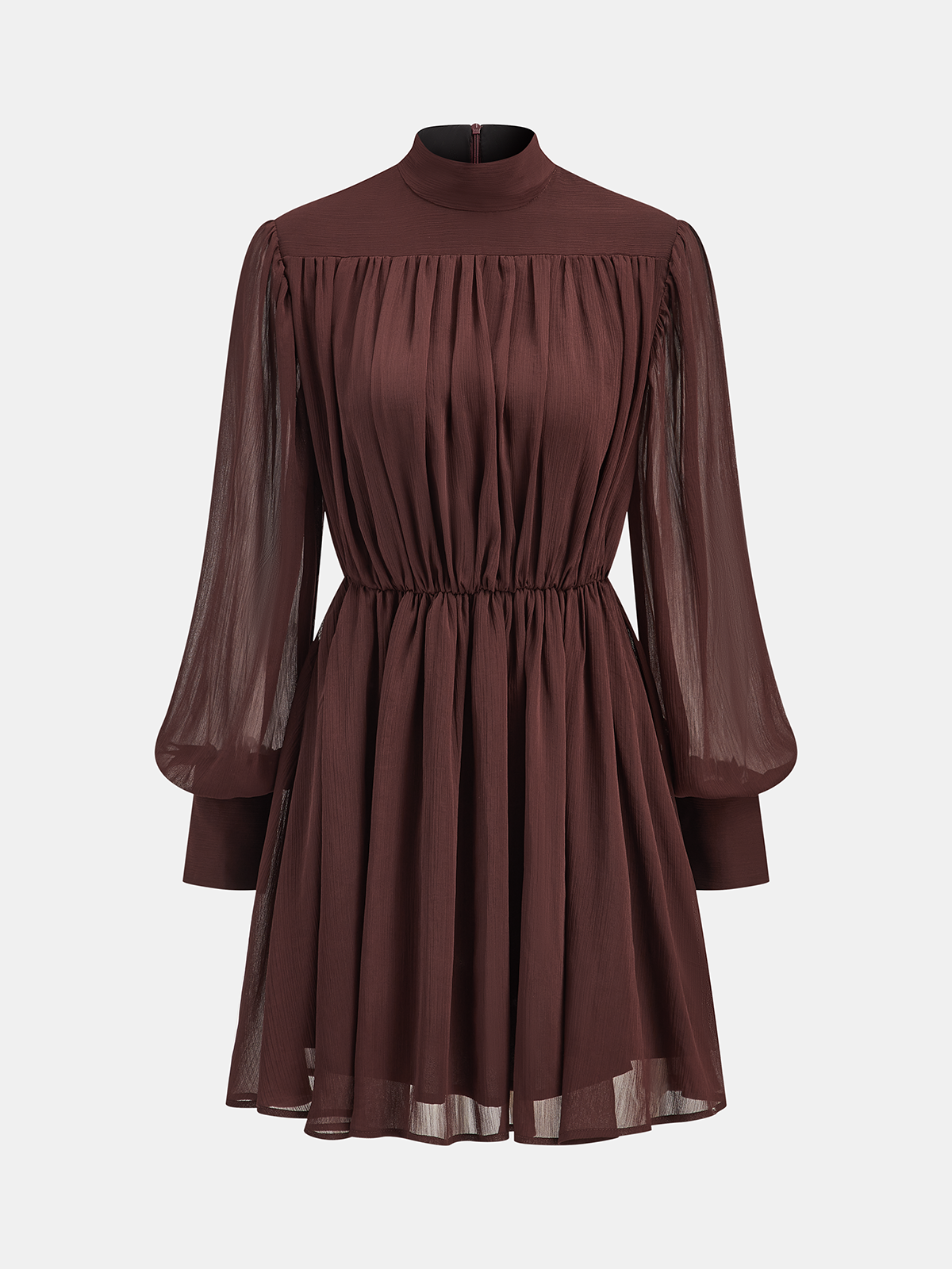 bohochic,casual,chiffon,clothing,coll:dresses,dark brown,date,dresses,fall,feminine,high neck,in_six_month,inner sample,invisible zipper,long sleeve,no,non-stretch,not_low_sales,oa250904068,regular,regular fit,short,spring,winter,winter hues,women