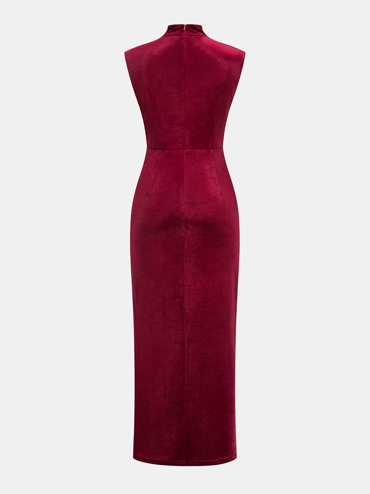 Sleeveless Side Slit Velvet Mock Neck Maxi Dress