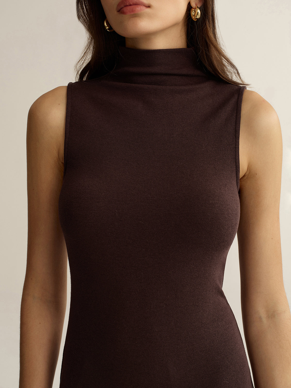 basic,basic - best value,casual,clothing,coll:dresses,dark brown,dresses,fall,funnel neck,in_six_month,inner sample,jersey,medium stretch,no,not_low_sales,oa251013029,photo_model,regular,short,sleeveless,slim fit,winter,winter hues,women