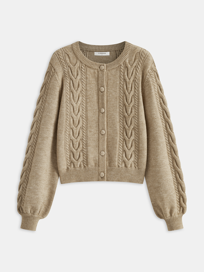 Cable Knit V-neck Puff Sleeve Sweater