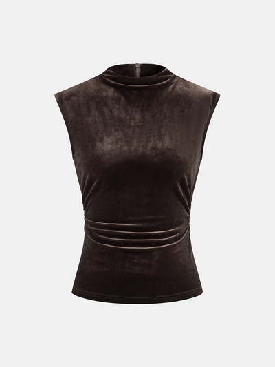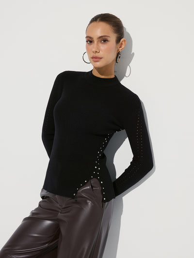Metal Detail Cut-Out Mock Neck Fitted Sweater