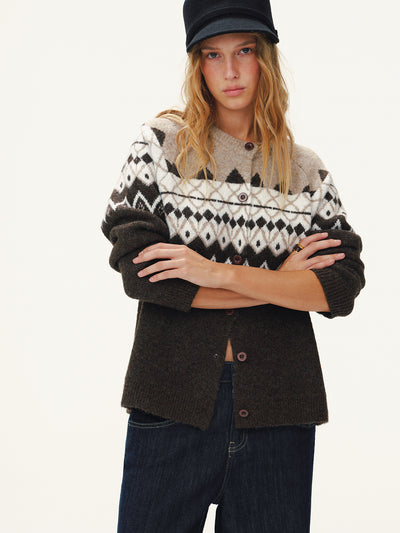Wool Blend Cable Knit V-Neck Button Cardigan