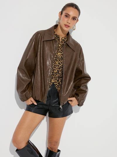 Faux Leather Collar Plaid Faux Cashmere Coat