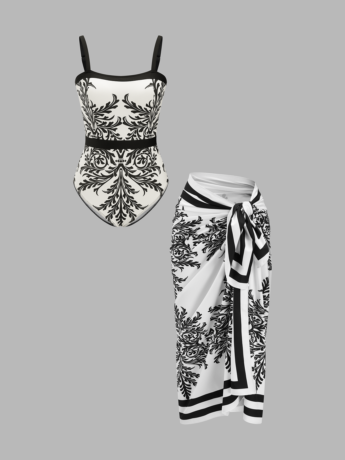 Baroque Print One-Piece Swimsuit & Sarong Set