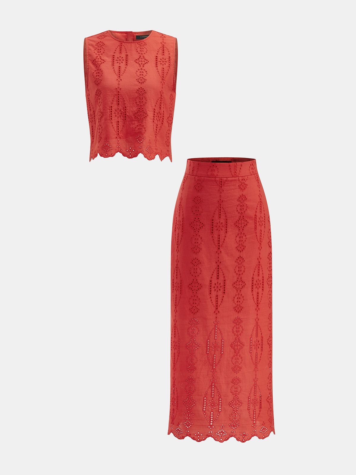 Cotton Eyelet Embroidery Top & Midi Skirt Set