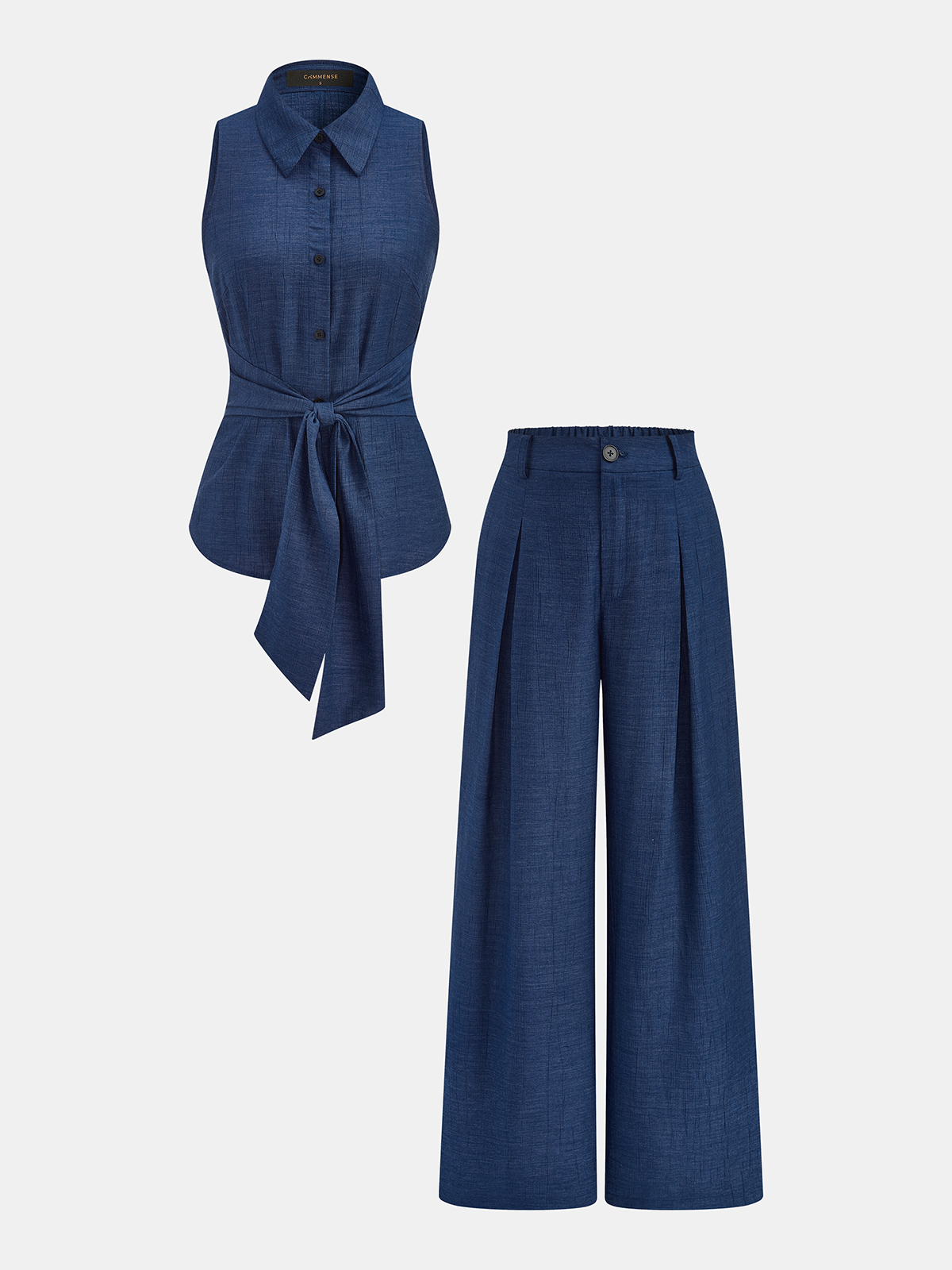 basic - fabric,casual,clothing,coll:bottoms,coll:matching_sets,coll:vacation,coll:weekend_getaway,in_six_month,minegence,navy,non-stretch,not_low_sales,oa260302015,pant sets,pleated,sets,shift,thin,tied&knot,vacation,women,woven fabric