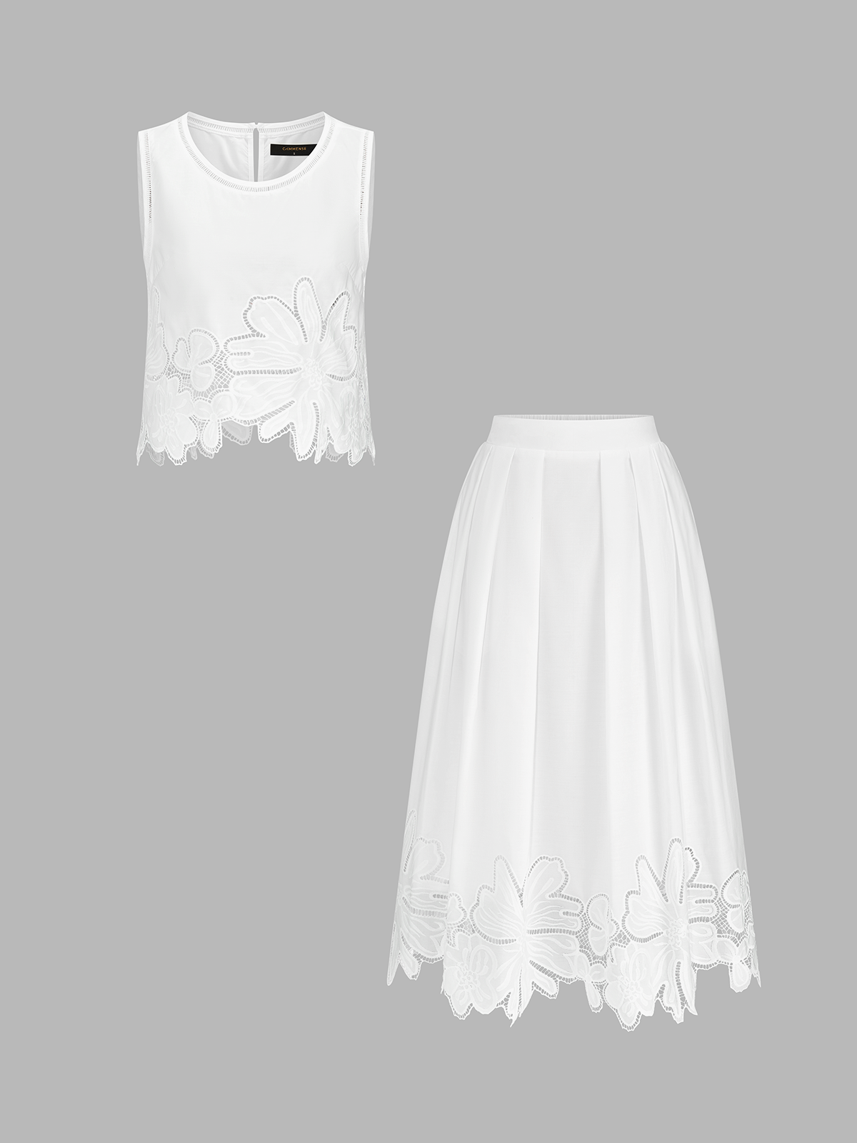 casual,clothing,coll:floral_gradient,coll:matching_sets,coll:skirts,coll:vacation,coll:weekend_getaway,floral print,hollow,in_six_month,invisible zipper,minegence,non-stretch,not_low_sales,oa260313081,pleated,regular,regular fit,sets,skirt sets,vacation,white,women,woven fabric