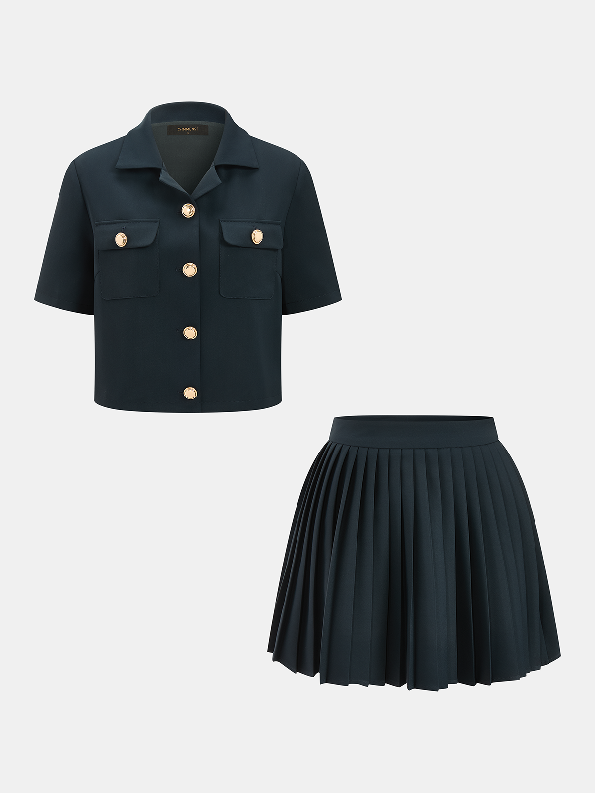 clothing,coll:matching_sets,coll:skirts,corpcore,in_six_month,invisible zipper,metal detail,minegence,navy,non-stretch,not_low_sales,oa260129019,photo_ai,pleated,regular,regular fit,sets,skirt sets,women,woven fabric