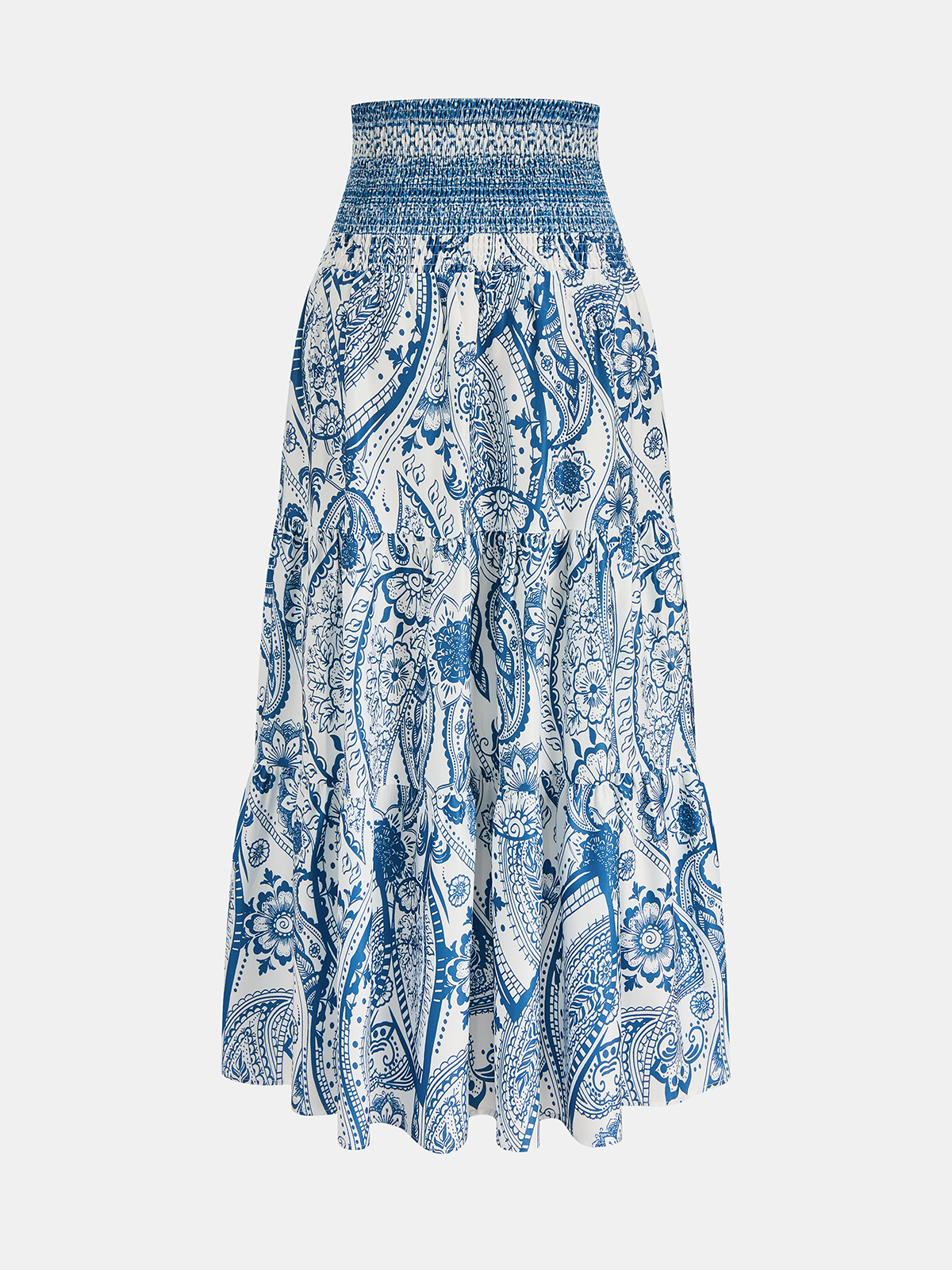 Smocked Waist Paisley Print Maxi Skirt