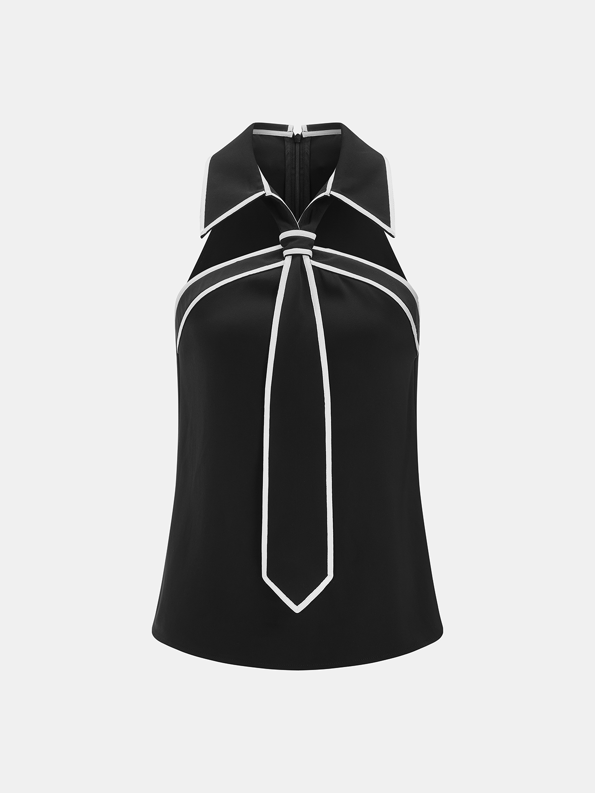 Tie Detail Contrast Piping Sleeveless Blouse