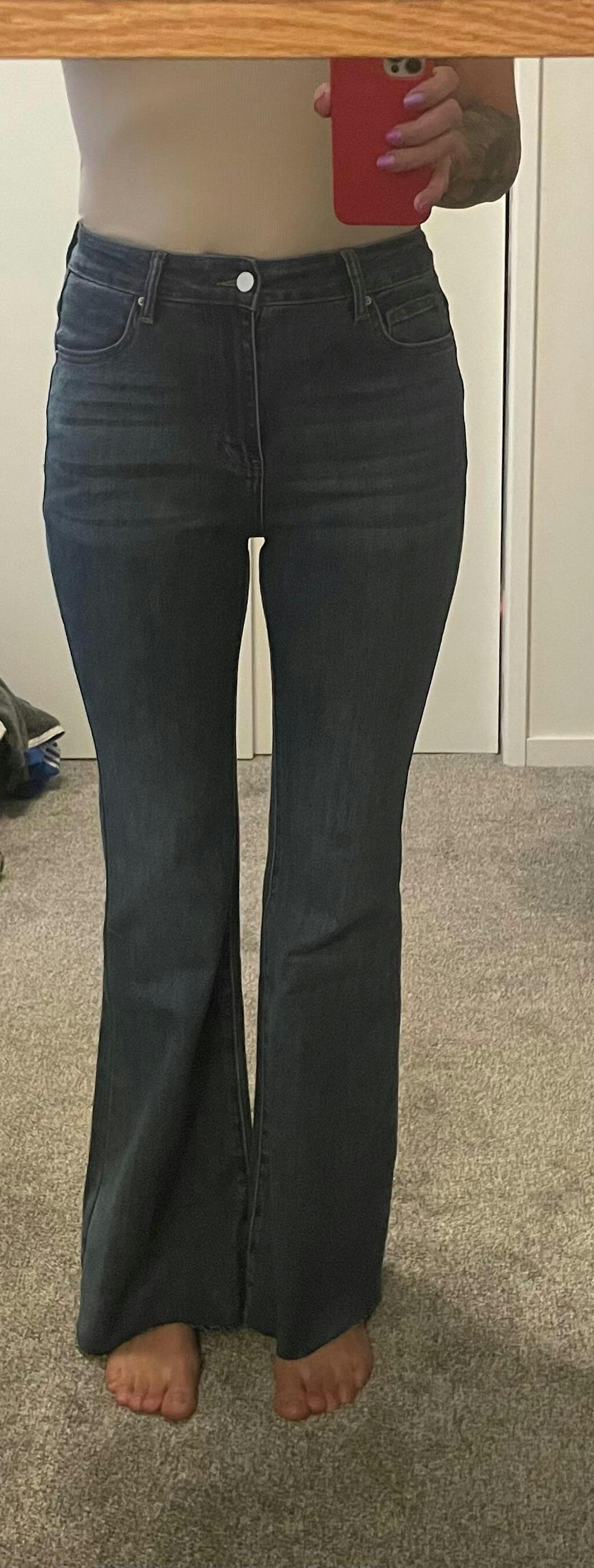 I love these jeans. I'm 5'7 and usually jeans look short on me but this was the perfect length. I got a size small and it fits great. Looks exactly like it's pictures on the website. I love the quality and they are comfortable. It took 3 weeks to come though, but worth the wait