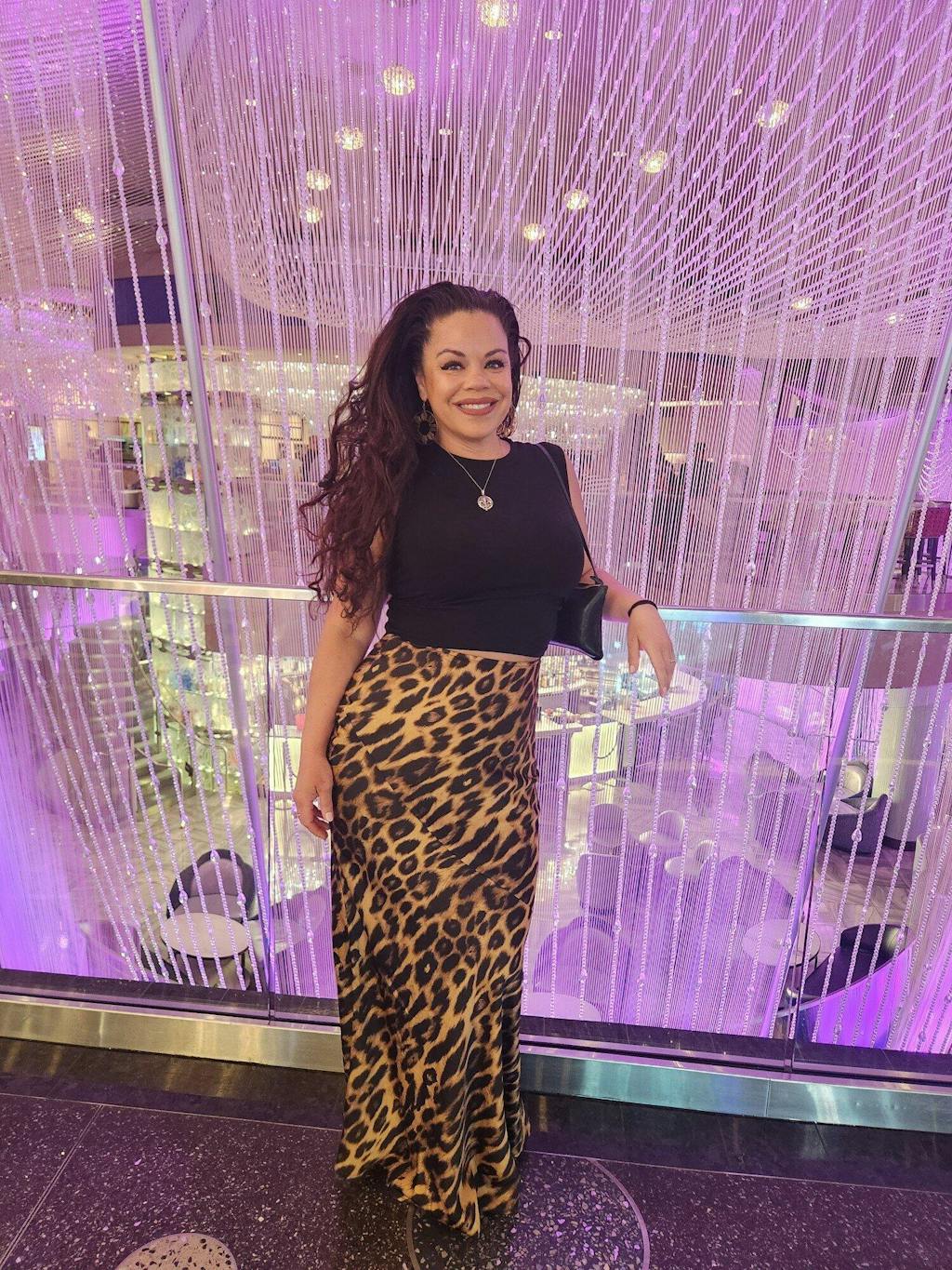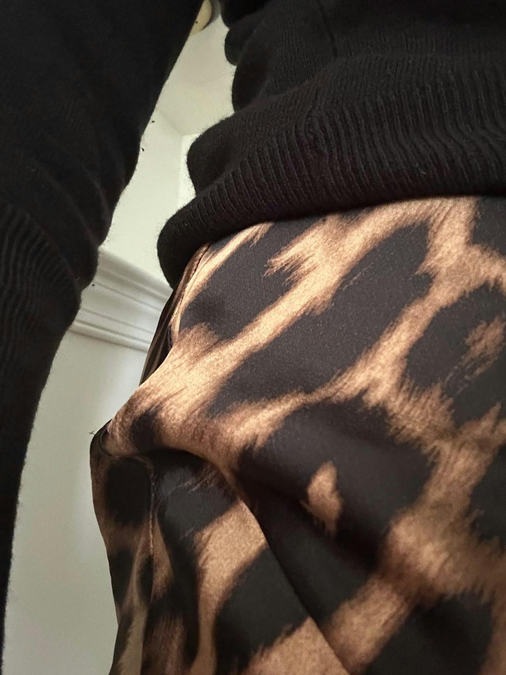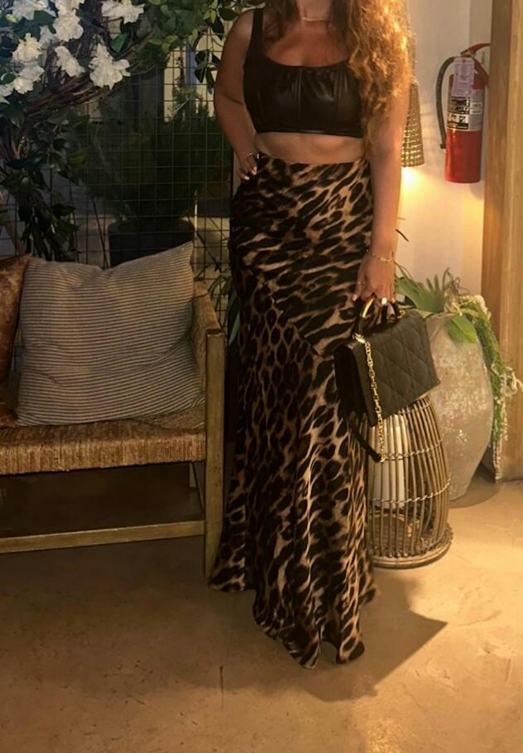 This skirt is a bold statement piece that exudes confidence and glamour. The striking animal print instantly catches the eye, while the flowy silhouette adds elegance and movement. It pairs beautifully with both sleek tops and more casual pieces, making it versatile for a chic night out or an upscale event. A perfect blend of fierce and fashionable