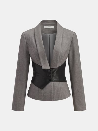 Faux Leather Collar Plaid Faux Cashmere Coat